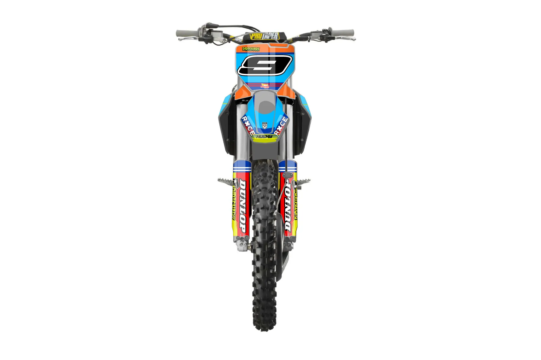 «CustomDesign» — готовый комплект графики серии Untucked для Husqvarna MX Graphic Kit Husqvarna FC250 2023. В комплекте: графика на бак и боковые облицовки, крылья (переднее и заднее), передний щиток, номерные таблички, защита вилки. Материал: ПВХ-винил 80 мкр с холодной ламинацией 300 мкр, общая толщина 380 мкр; покрытие глянцевое или матовое на выбор. Устойчив к UV-излучению, воде, бензину и мойке высокого давления. Клей акриловый на сольвентной основе — постоянный, для гибких пластиков. На простых поверхностях монтируется без нагрева; для сложных изгибов рекомендуем фен. Этот пресет можно заказать как есть или взять за основу в конструкторе: поменять цвета, добавить стартовый номер и свой бренд. Производство — 3–5 рабочих дней, доставка по России СДЭКом или Почтой, по СНГ — курьерскими службами.