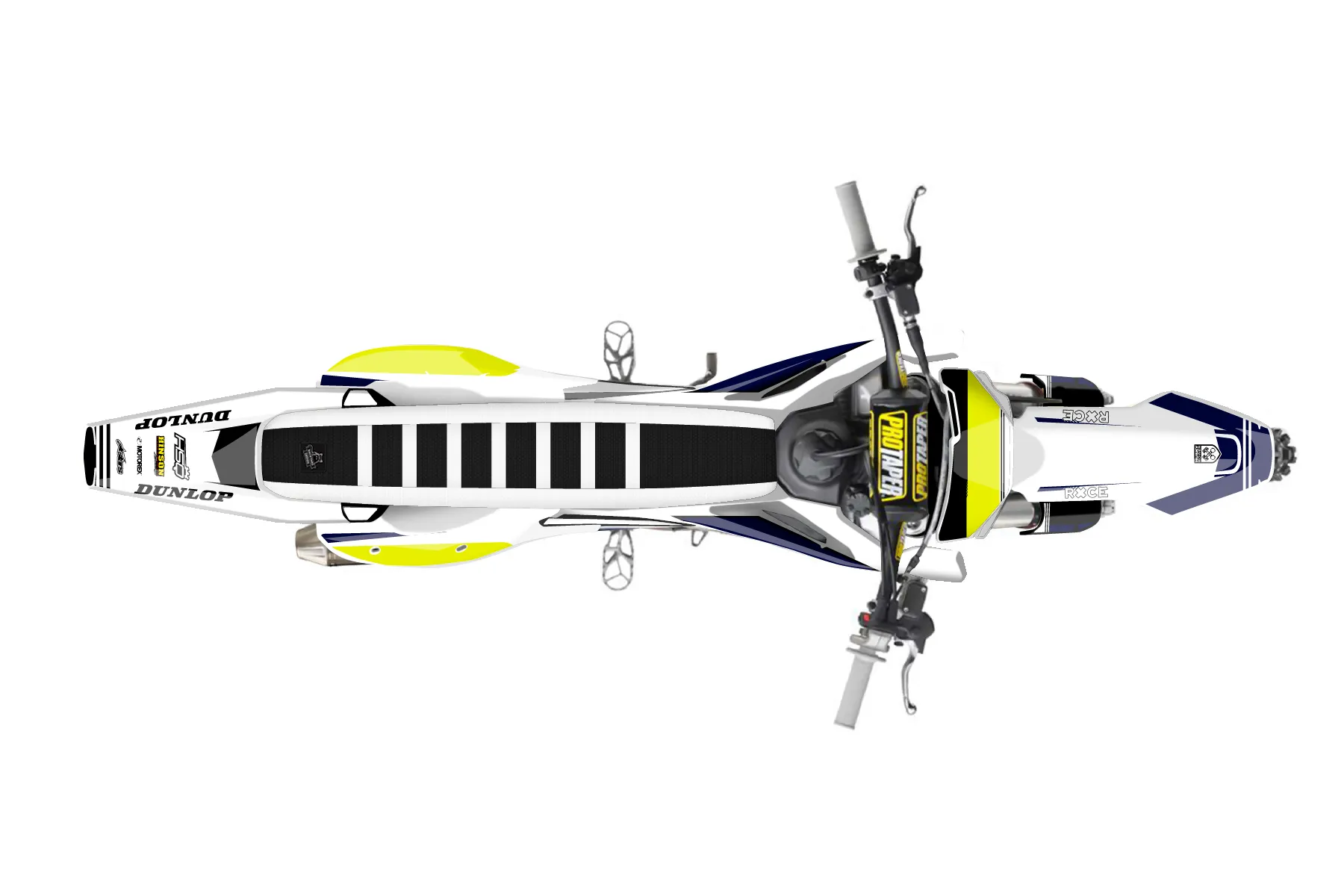«Husky» — готовый комплект графики серии Untucked для Husqvarna MX Graphic Kit Husqvarna FC250 2023. В комплекте: графика на бак и боковые облицовки, крылья (переднее и заднее), передний щиток, номерные таблички, защита вилки. Материал: ПВХ-винил 80 мкр с холодной ламинацией 300 мкр, общая толщина 380 мкр; покрытие глянцевое или матовое на выбор. Устойчив к UV-излучению, воде, бензину и мойке высокого давления. Клей акриловый на сольвентной основе — постоянный, для гибких пластиков. На простых поверхностях монтируется без нагрева; для сложных изгибов рекомендуем фен. Этот пресет можно заказать как есть или взять за основу в конструкторе: поменять цвета, добавить стартовый номер и свой бренд. Производство — 3–5 рабочих дней, доставка по России СДЭКом или Почтой, по СНГ — курьерскими службами.