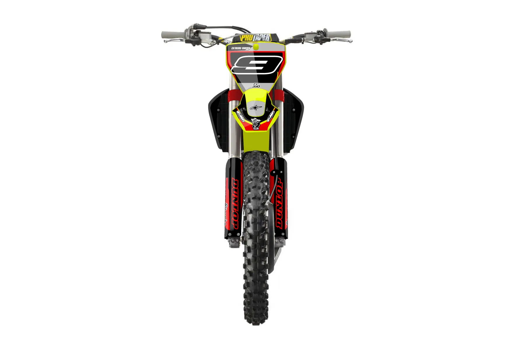 «CustomDesign» — готовый комплект графики серии Flow для Husqvarna MX Graphic Kit Husqvarna FC350 2016. В комплекте: графика на бак и боковые облицовки, крылья (переднее и заднее), передний щиток, номерные таблички, защита вилки. Материал: ПВХ-винил 80 мкр с холодной ламинацией 300 мкр, общая толщина 380 мкр; покрытие глянцевое или матовое на выбор. Устойчив к UV-излучению, воде, бензину и мойке высокого давления. Клей акриловый на сольвентной основе — постоянный, для гибких пластиков. На простых поверхностях монтируется без нагрева; для сложных изгибов рекомендуем фен. Этот пресет можно заказать как есть или взять за основу в конструкторе: поменять цвета, добавить стартовый номер и свой бренд. Производство — 3–5 рабочих дней, доставка по России СДЭКом или Почтой, по СНГ — курьерскими службами.