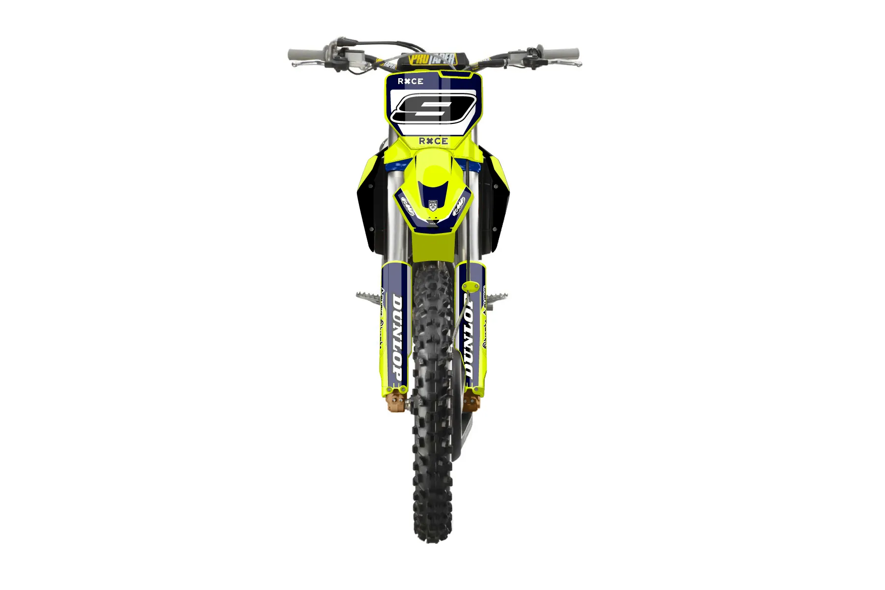«350 husky yellow» — готовый комплект графики серии Flow для Husqvarna MX Graphic Kit Husqvarna FC350 2023. В комплекте: графика на бак и боковые облицовки, крылья (переднее и заднее), передний щиток, номерные таблички, защита вилки. Материал: ПВХ-винил 80 мкр с холодной ламинацией 300 мкр, общая толщина 380 мкр; покрытие глянцевое или матовое на выбор. Устойчив к UV-излучению, воде, бензину и мойке высокого давления. Клей акриловый на сольвентной основе — постоянный, для гибких пластиков. На простых поверхностях монтируется без нагрева; для сложных изгибов рекомендуем фен. Этот пресет можно заказать как есть или взять за основу в конструкторе: поменять цвета, добавить стартовый номер и свой бренд. Производство — 3–5 рабочих дней, доставка по России СДЭКом или Почтой, по СНГ — курьерскими службами.