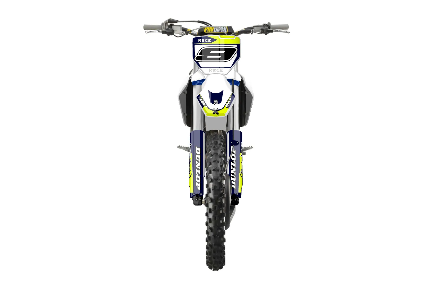 «HUSKY 350» — готовый комплект графики серии Flow для Husqvarna MX Graphic Kit Husqvarna FC350 2023. В комплекте: графика на бак и боковые облицовки, крылья (переднее и заднее), передний щиток, номерные таблички, защита вилки. Материал: ПВХ-винил 80 мкр с холодной ламинацией 300 мкр, общая толщина 380 мкр; покрытие глянцевое или матовое на выбор. Устойчив к UV-излучению, воде, бензину и мойке высокого давления. Клей акриловый на сольвентной основе — постоянный, для гибких пластиков. На простых поверхностях монтируется без нагрева; для сложных изгибов рекомендуем фен. Этот пресет можно заказать как есть или взять за основу в конструкторе: поменять цвета, добавить стартовый номер и свой бренд. Производство — 3–5 рабочих дней, доставка по России СДЭКом или Почтой, по СНГ — курьерскими службами.