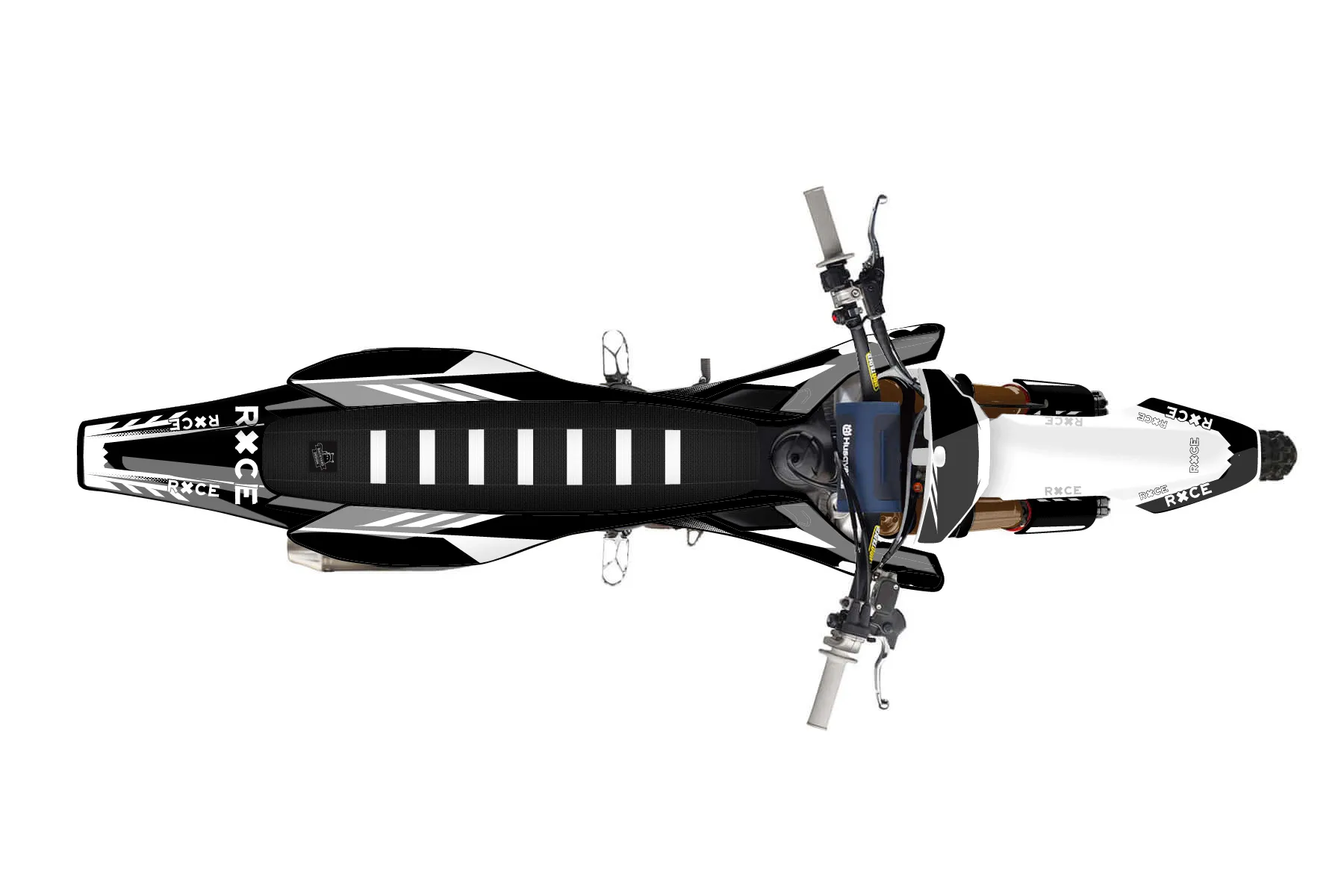 «Customstraight shooter husky 450» — готовый комплект графики серии Maverick для Husqvarna MX Graphic Kit Husqvarna FC450 2016. В комплекте: графика на бак и боковые облицовки, крылья (переднее и заднее), передний щиток, номерные таблички, защита вилки. Материал: ПВХ-винил 80 мкр с холодной ламинацией 300 мкр, общая толщина 380 мкр; покрытие глянцевое или матовое на выбор. Устойчив к UV-излучению, воде, бензину и мойке высокого давления. Клей акриловый на сольвентной основе — постоянный, для гибких пластиков. На простых поверхностях монтируется без нагрева; для сложных изгибов рекомендуем фен. Этот пресет можно заказать как есть или взять за основу в конструкторе: поменять цвета, добавить стартовый номер и свой бренд. Производство — 3–5 рабочих дней, доставка по России СДЭКом или Почтой, по СНГ — курьерскими службами.
