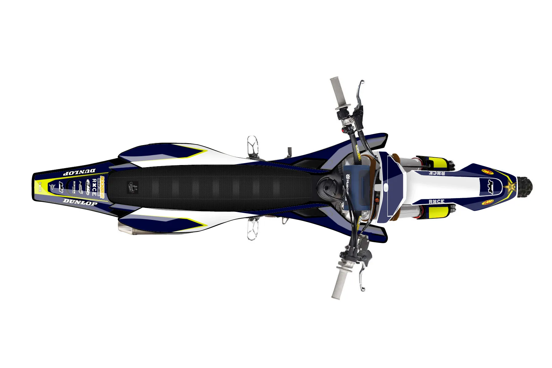 «Blue rockstar for fc450» — готовый комплект графики серии Staple для Husqvarna MX Graphic Kit Husqvarna FC450 2016. В комплекте: графика на бак и боковые облицовки, крылья (переднее и заднее), передний щиток, номерные таблички, защита вилки. Материал: ПВХ-винил 80 мкр с холодной ламинацией 300 мкр, общая толщина 380 мкр; покрытие глянцевое или матовое на выбор. Устойчив к UV-излучению, воде, бензину и мойке высокого давления. Клей акриловый на сольвентной основе — постоянный, для гибких пластиков. На простых поверхностях монтируется без нагрева; для сложных изгибов рекомендуем фен. Этот пресет можно заказать как есть или взять за основу в конструкторе: поменять цвета, добавить стартовый номер и свой бренд. Производство — 3–5 рабочих дней, доставка по России СДЭКом или Почтой, по СНГ — курьерскими службами.