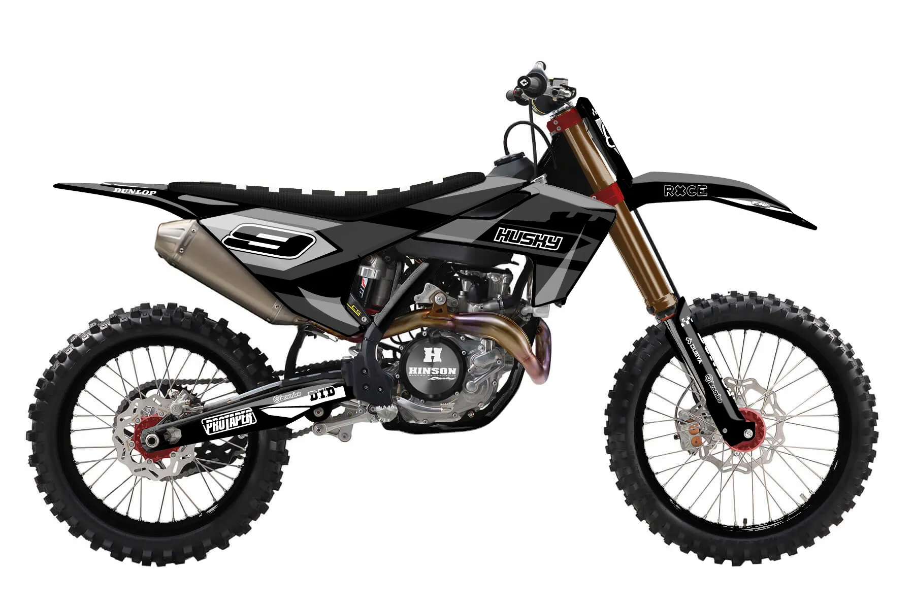 «HUSKY» — готовый комплект графики серии Staple для Husqvarna MX Graphic Kit Husqvarna FC450 2016. В комплекте: графика на бак и боковые облицовки, крылья (переднее и заднее), передний щиток, номерные таблички, защита вилки. Материал: ПВХ-винил 80 мкр с холодной ламинацией 300 мкр, общая толщина 380 мкр; покрытие глянцевое или матовое на выбор. Устойчив к UV-излучению, воде, бензину и мойке высокого давления. Клей акриловый на сольвентной основе — постоянный, для гибких пластиков. На простых поверхностях монтируется без нагрева; для сложных изгибов рекомендуем фен. Этот пресет можно заказать как есть или взять за основу в конструкторе: поменять цвета, добавить стартовый номер и свой бренд. Производство — 3–5 рабочих дней, доставка по России СДЭКом или Почтой, по СНГ — курьерскими службами.