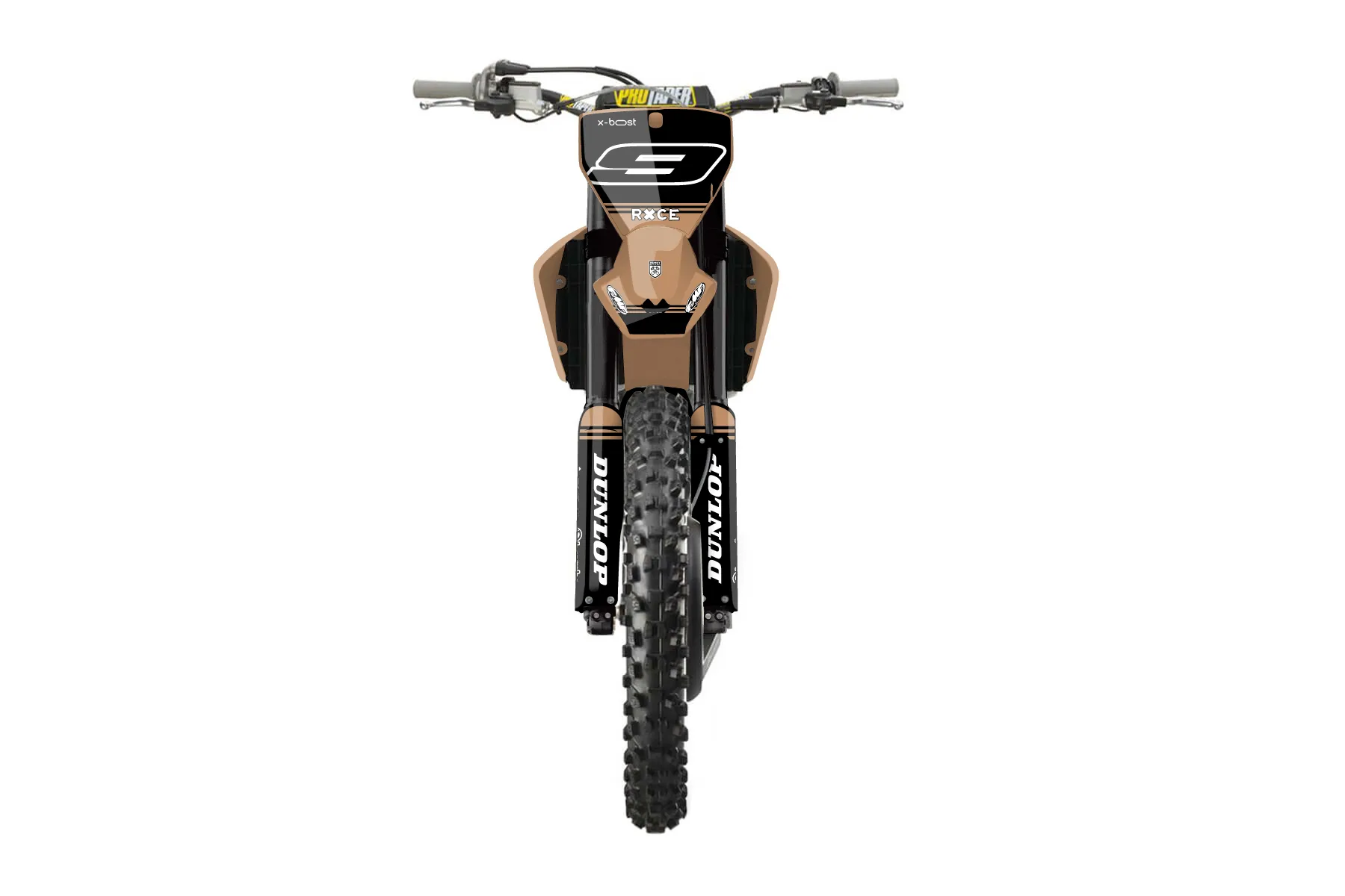 «Trademark» — готовый комплект графики серии Untucked для Husqvarna MX Graphic Kit Husqvarna FC450 2019. В комплекте: графика на бак и боковые облицовки, крылья (переднее и заднее), передний щиток, номерные таблички, защита вилки. Материал: ПВХ-винил 80 мкр с холодной ламинацией 300 мкр, общая толщина 380 мкр; покрытие глянцевое или матовое на выбор. Устойчив к UV-излучению, воде, бензину и мойке высокого давления. Клей акриловый на сольвентной основе — постоянный, для гибких пластиков. На простых поверхностях монтируется без нагрева; для сложных изгибов рекомендуем фен. Этот пресет можно заказать как есть или взять за основу в конструкторе: поменять цвета, добавить стартовый номер и свой бренд. Производство — 3–5 рабочих дней, доставка по России СДЭКом или Почтой, по СНГ — курьерскими службами.