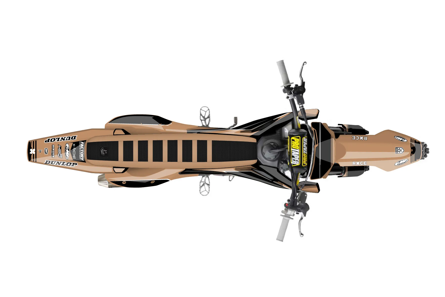 «Dew» — готовый комплект графики серии Untucked для Husqvarna MX Graphic Kit Husqvarna FC450 2022. В комплекте: графика на бак и боковые облицовки, крылья (переднее и заднее), передний щиток, номерные таблички, защита вилки. Материал: ПВХ-винил 80 мкр с холодной ламинацией 300 мкр, общая толщина 380 мкр; покрытие глянцевое или матовое на выбор. Устойчив к UV-излучению, воде, бензину и мойке высокого давления. Клей акриловый на сольвентной основе — постоянный, для гибких пластиков. На простых поверхностях монтируется без нагрева; для сложных изгибов рекомендуем фен. Этот пресет можно заказать как есть или взять за основу в конструкторе: поменять цвета, добавить стартовый номер и свой бренд. Производство — 3–5 рабочих дней, доставка по России СДЭКом или Почтой, по СНГ — курьерскими службами.