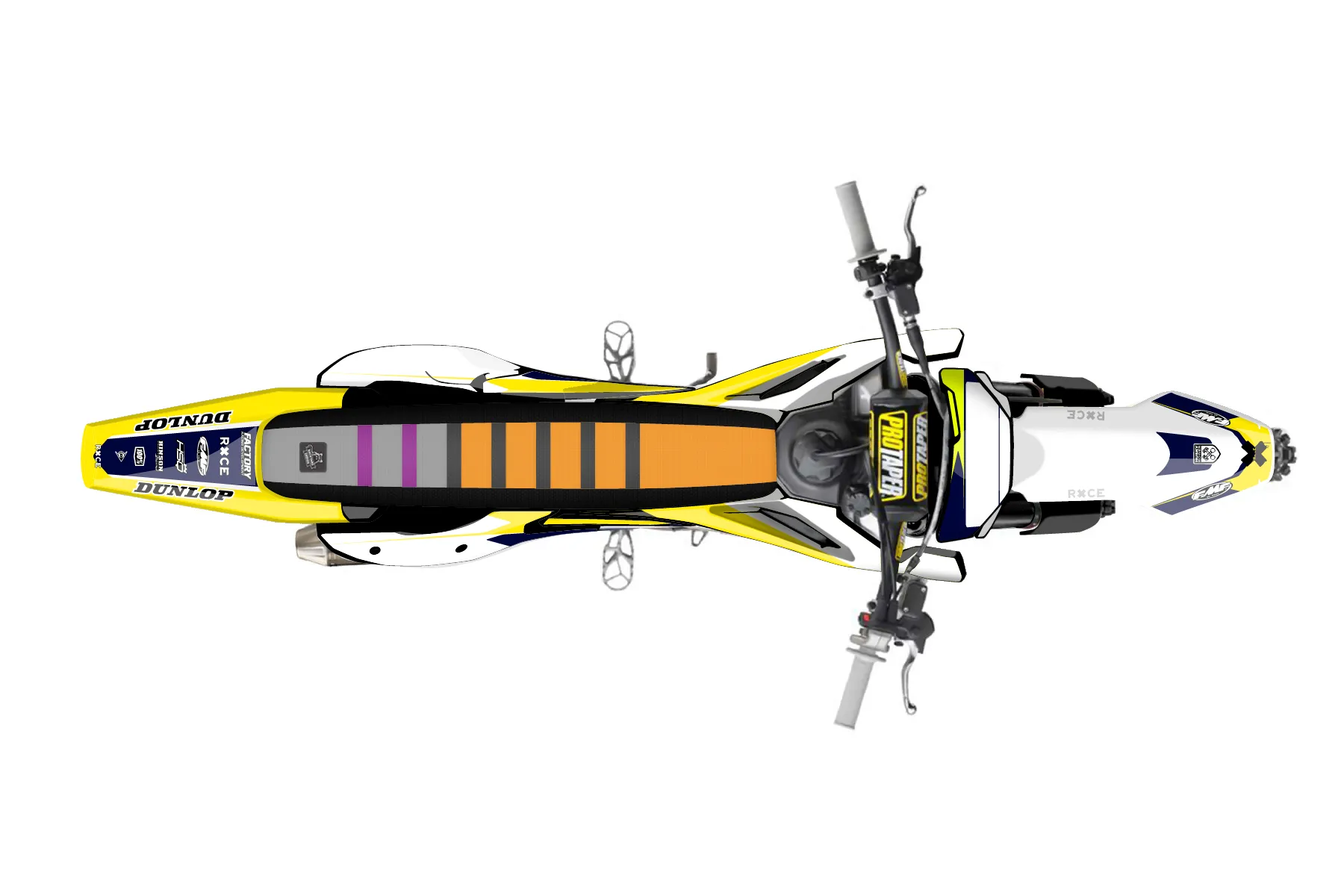 «FC450_01» — готовый комплект графики серии Flow для Husqvarna MX Graphic Kit Husqvarna FC450 2023. В комплекте: графика на бак и боковые облицовки, крылья (переднее и заднее), передний щиток, номерные таблички, защита вилки. Материал: ПВХ-винил 80 мкр с холодной ламинацией 300 мкр, общая толщина 380 мкр; покрытие глянцевое или матовое на выбор. Устойчив к UV-излучению, воде, бензину и мойке высокого давления. Клей акриловый на сольвентной основе — постоянный, для гибких пластиков. На простых поверхностях монтируется без нагрева; для сложных изгибов рекомендуем фен. Этот пресет можно заказать как есть или взять за основу в конструкторе: поменять цвета, добавить стартовый номер и свой бренд. Производство — 3–5 рабочих дней, доставка по России СДЭКом или Почтой, по СНГ — курьерскими службами.