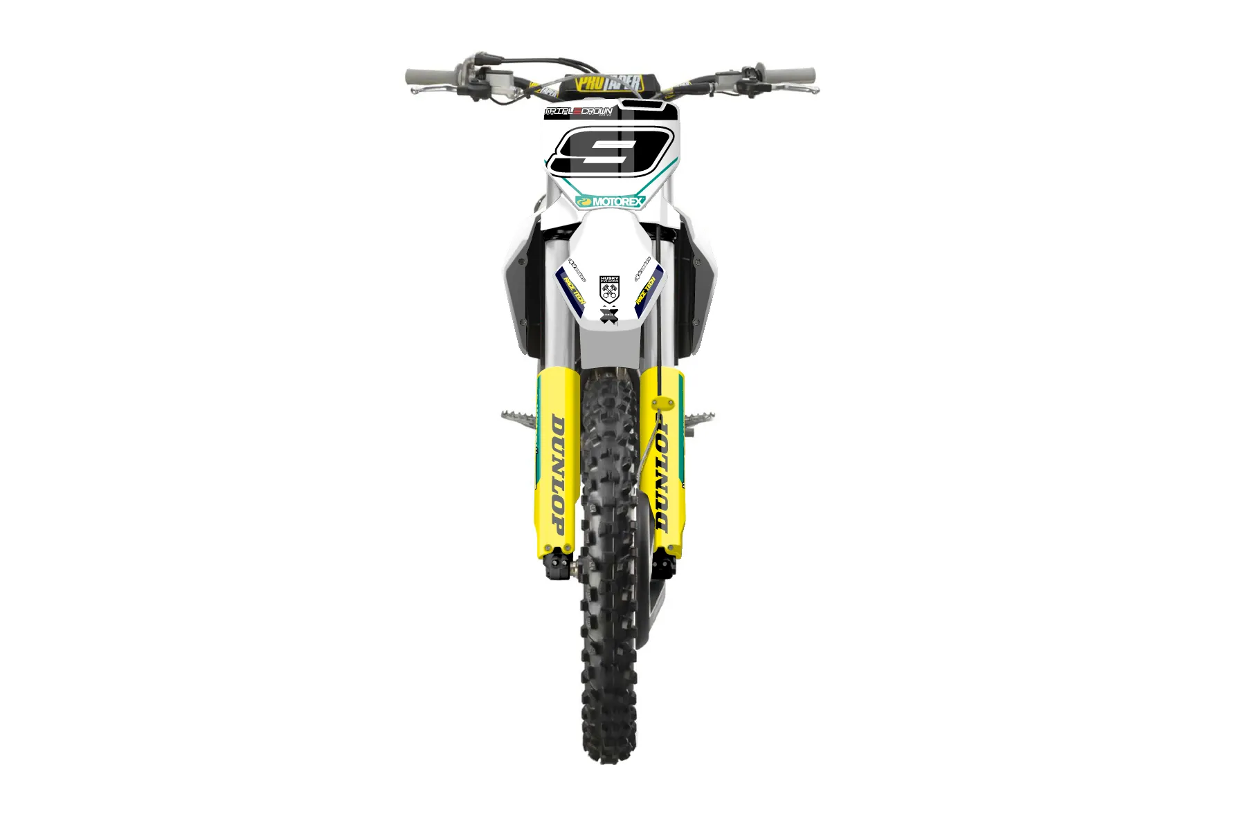 «CustomDesign» — готовый комплект графики серии Maverick для Husqvarna MX Graphic Kit Husqvarna FC450 2023. В комплекте: графика на бак и боковые облицовки, крылья (переднее и заднее), передний щиток, номерные таблички, защита вилки. Материал: ПВХ-винил 80 мкр с холодной ламинацией 300 мкр, общая толщина 380 мкр; покрытие глянцевое или матовое на выбор. Устойчив к UV-излучению, воде, бензину и мойке высокого давления. Клей акриловый на сольвентной основе — постоянный, для гибких пластиков. На простых поверхностях монтируется без нагрева; для сложных изгибов рекомендуем фен. Этот пресет можно заказать как есть или взять за основу в конструкторе: поменять цвета, добавить стартовый номер и свой бренд. Производство — 3–5 рабочих дней, доставка по России СДЭКом или Почтой, по СНГ — курьерскими службами.