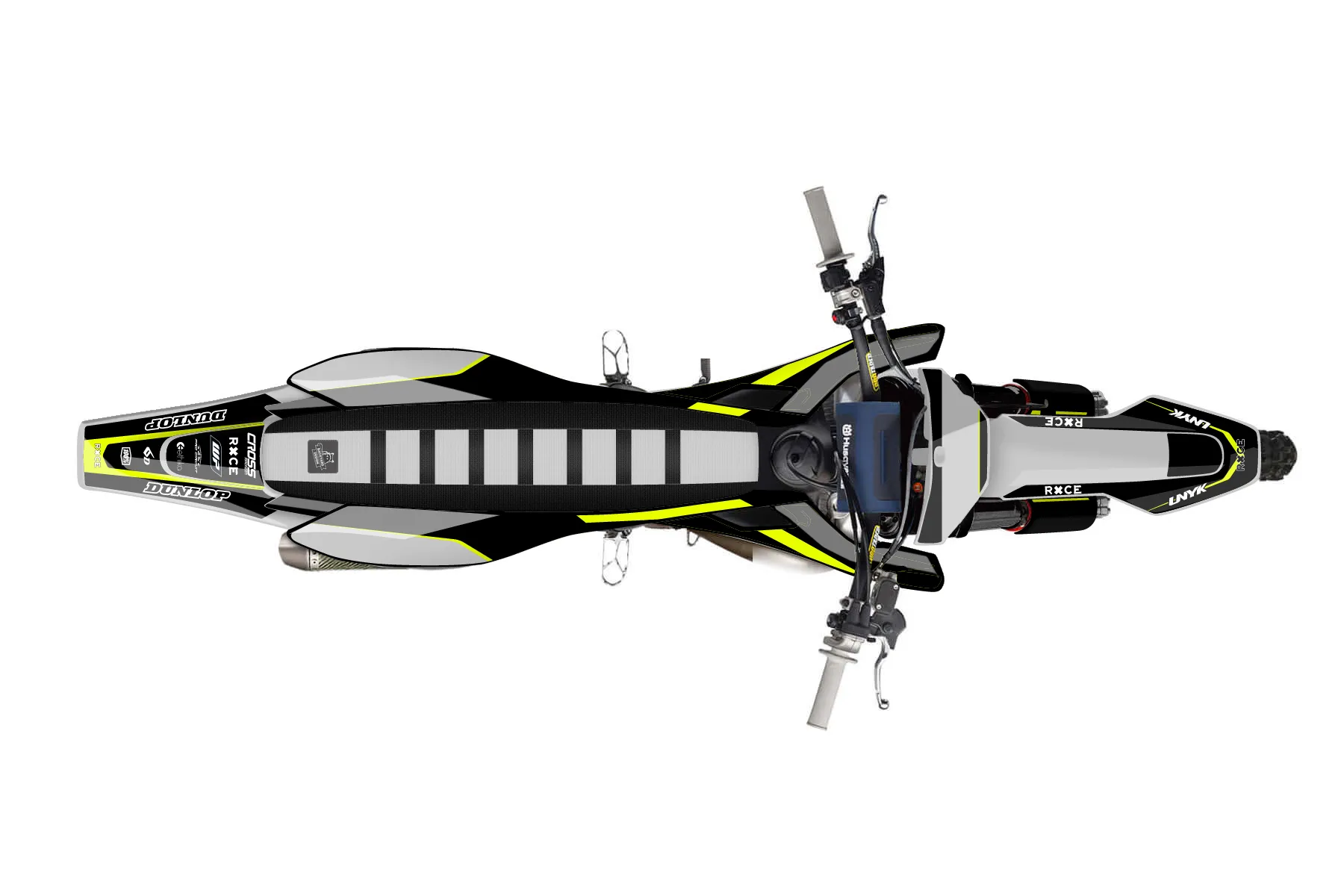 «Cyber Pirate» — готовый комплект графики серии Flow для Husqvarna MX Graphic Kit Husqvarna TC250 2016. В комплекте: графика на бак и боковые облицовки, крылья (переднее и заднее), передний щиток, номерные таблички, защита вилки. Материал: ПВХ-винил 80 мкр с холодной ламинацией 300 мкр, общая толщина 380 мкр; покрытие глянцевое или матовое на выбор. Устойчив к UV-излучению, воде, бензину и мойке высокого давления. Клей акриловый на сольвентной основе — постоянный, для гибких пластиков. На простых поверхностях монтируется без нагрева; для сложных изгибов рекомендуем фен. Этот пресет можно заказать как есть или взять за основу в конструкторе: поменять цвета, добавить стартовый номер и свой бренд. Производство — 3–5 рабочих дней, доставка по России СДЭКом или Почтой, по СНГ — курьерскими службами.