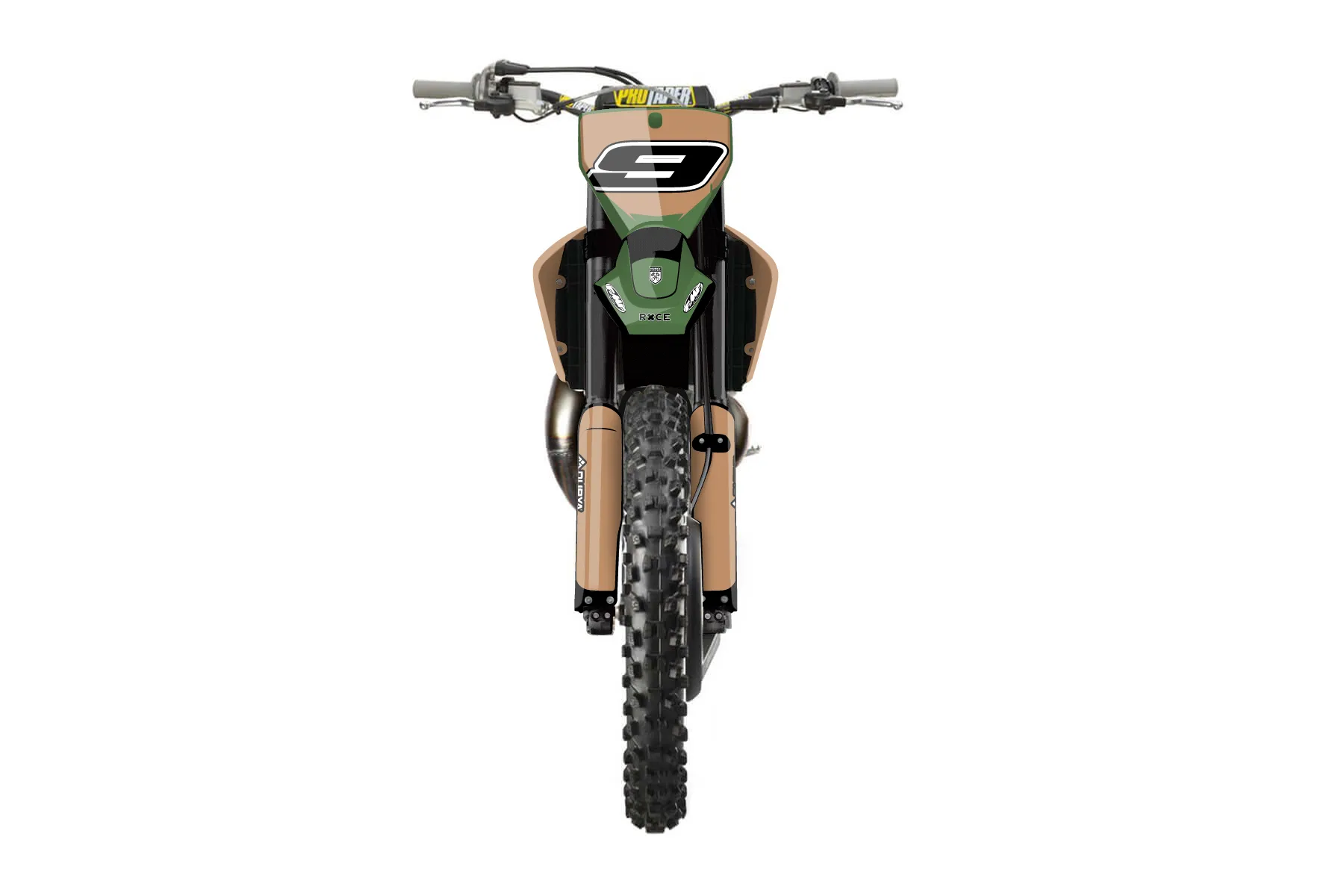 «Military» — готовый комплект графики серии Maverick для Husqvarna MX Graphic Kit Husqvarna TC250 2016. В комплекте: графика на бак и боковые облицовки, крылья (переднее и заднее), передний щиток, номерные таблички, защита вилки. Материал: ПВХ-винил 80 мкр с холодной ламинацией 300 мкр, общая толщина 380 мкр; покрытие глянцевое или матовое на выбор. Устойчив к UV-излучению, воде, бензину и мойке высокого давления. Клей акриловый на сольвентной основе — постоянный, для гибких пластиков. На простых поверхностях монтируется без нагрева; для сложных изгибов рекомендуем фен. Этот пресет можно заказать как есть или взять за основу в конструкторе: поменять цвета, добавить стартовый номер и свой бренд. Производство — 3–5 рабочих дней, доставка по России СДЭКом или Почтой, по СНГ — курьерскими службами.
