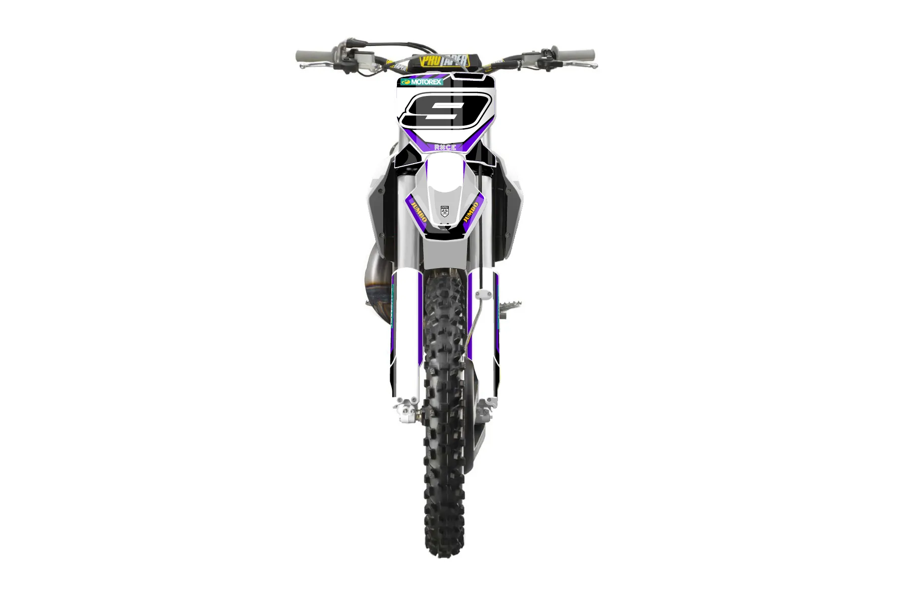 «Husky tc250» — готовый комплект графики серии Maverick для Husqvarna MX Graphic Kit Husqvarna TC250 2023. В комплекте: графика на бак и боковые облицовки, крылья (переднее и заднее), передний щиток, номерные таблички, защита вилки. Материал: ПВХ-винил 80 мкр с холодной ламинацией 300 мкр, общая толщина 380 мкр; покрытие глянцевое или матовое на выбор. Устойчив к UV-излучению, воде, бензину и мойке высокого давления. Клей акриловый на сольвентной основе — постоянный, для гибких пластиков. На простых поверхностях монтируется без нагрева; для сложных изгибов рекомендуем фен. Этот пресет можно заказать как есть или взять за основу в конструкторе: поменять цвета, добавить стартовый номер и свой бренд. Производство — 3–5 рабочих дней, доставка по России СДЭКом или Почтой, по СНГ — курьерскими службами.