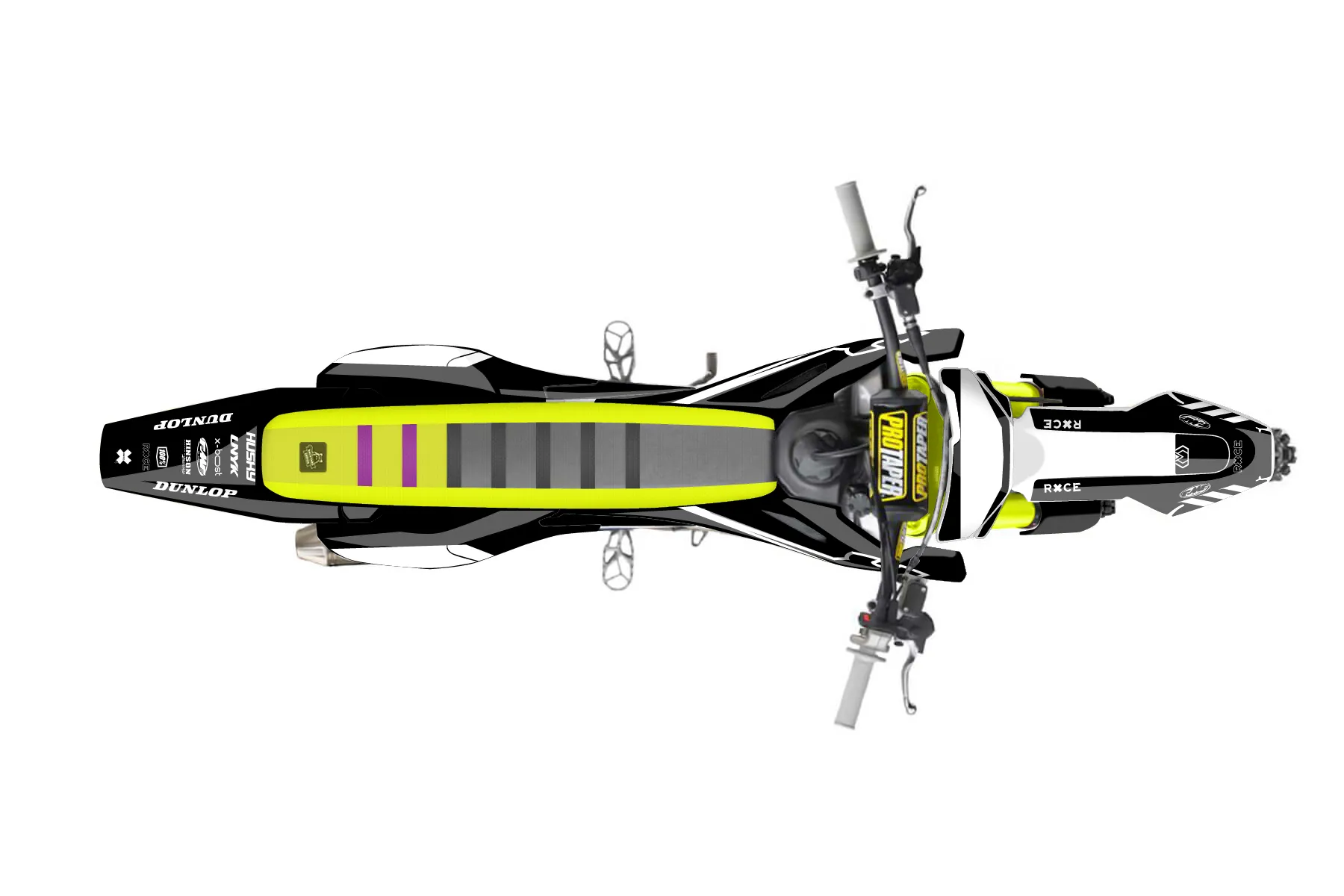«Yellow Husky Frame» — готовый комплект графики серии Maverick для Husqvarna MX Graphic Kit Husqvarna TC50 2016. В комплекте: графика на бак и боковые облицовки, крылья (переднее и заднее), передний щиток, номерные таблички, защита вилки. Материал: ПВХ-винил 80 мкр с холодной ламинацией 300 мкр, общая толщина 380 мкр; покрытие глянцевое или матовое на выбор. Устойчив к UV-излучению, воде, бензину и мойке высокого давления. Клей акриловый на сольвентной основе — постоянный, для гибких пластиков. На простых поверхностях монтируется без нагрева; для сложных изгибов рекомендуем фен. Этот пресет можно заказать как есть или взять за основу в конструкторе: поменять цвета, добавить стартовый номер и свой бренд. Производство — 3–5 рабочих дней, доставка по России СДЭКом или Почтой, по СНГ — курьерскими службами.