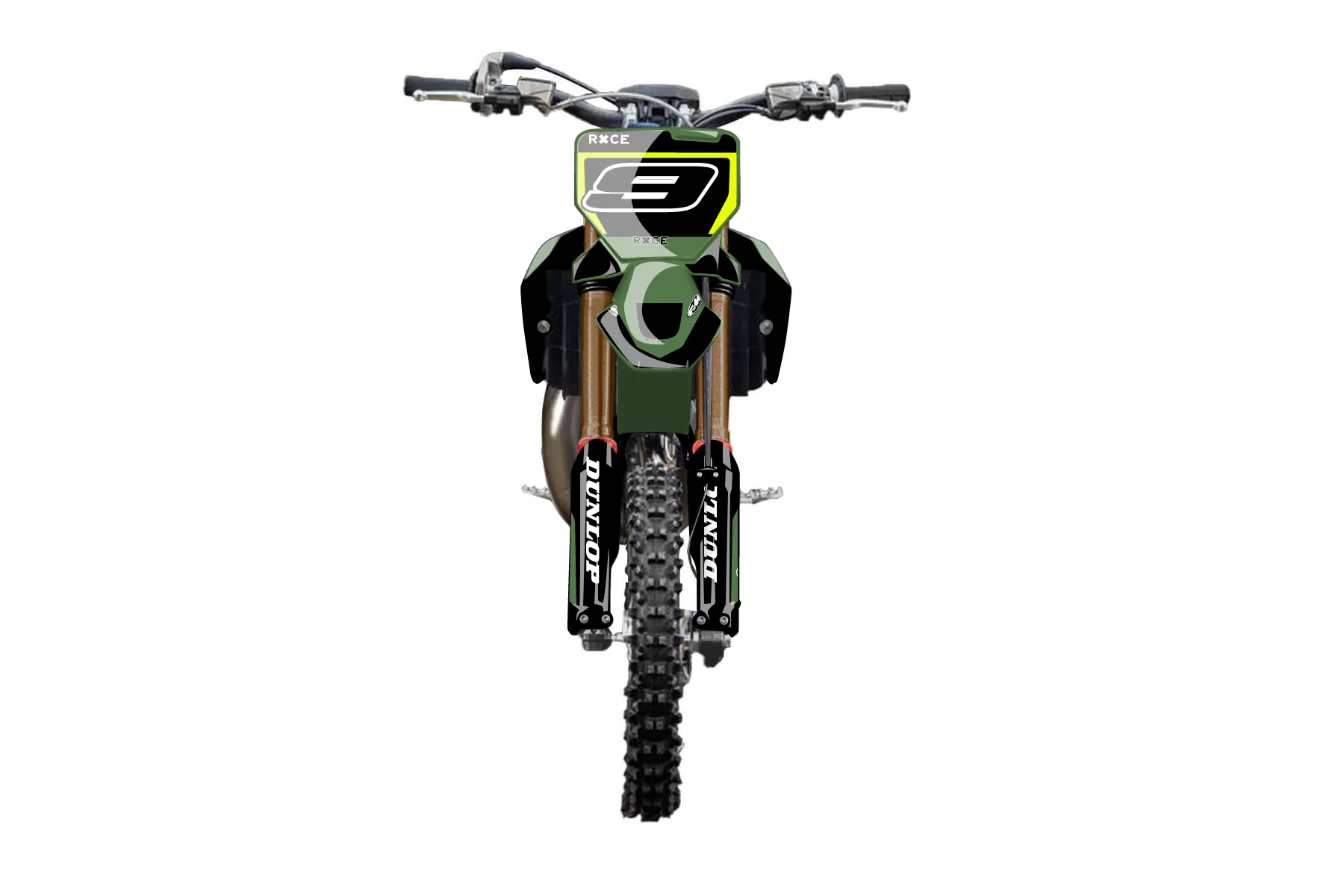 «ArmyGreen» — готовый комплект графики серии Flow для Husqvarna MX Graphic Kit Husqvarna TC50 2019. В комплекте: графика на бак и боковые облицовки, крылья (переднее и заднее), передний щиток, номерные таблички, защита вилки. Материал: ПВХ-винил 80 мкр с холодной ламинацией 300 мкр, общая толщина 380 мкр; покрытие глянцевое или матовое на выбор. Устойчив к UV-излучению, воде, бензину и мойке высокого давления. Клей акриловый на сольвентной основе — постоянный, для гибких пластиков. На простых поверхностях монтируется без нагрева; для сложных изгибов рекомендуем фен. Этот пресет можно заказать как есть или взять за основу в конструкторе: поменять цвета, добавить стартовый номер и свой бренд. Производство — 3–5 рабочих дней, доставка по России СДЭКом или Почтой, по СНГ — курьерскими службами.