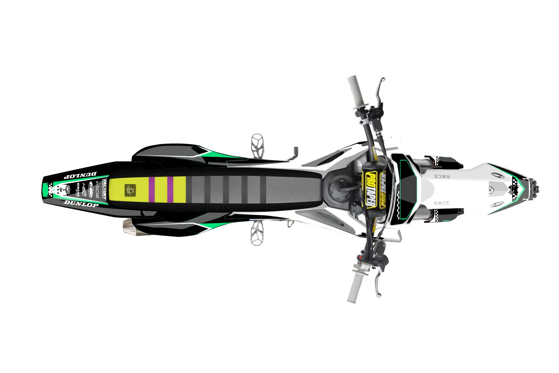 «Drizzle» — готовый комплект графики серии Staple для Husqvarna MX Graphic Kit Husqvarna TC50 2019. В комплекте: графика на бак и боковые облицовки, крылья (переднее и заднее), передний щиток, номерные таблички, защита вилки. Материал: ПВХ-винил 80 мкр с холодной ламинацией 300 мкр, общая толщина 380 мкр; покрытие глянцевое или матовое на выбор. Устойчив к UV-излучению, воде, бензину и мойке высокого давления. Клей акриловый на сольвентной основе — постоянный, для гибких пластиков. На простых поверхностях монтируется без нагрева; для сложных изгибов рекомендуем фен. Этот пресет можно заказать как есть или взять за основу в конструкторе: поменять цвета, добавить стартовый номер и свой бренд. Производство — 3–5 рабочих дней, доставка по России СДЭКом или Почтой, по СНГ — курьерскими службами.