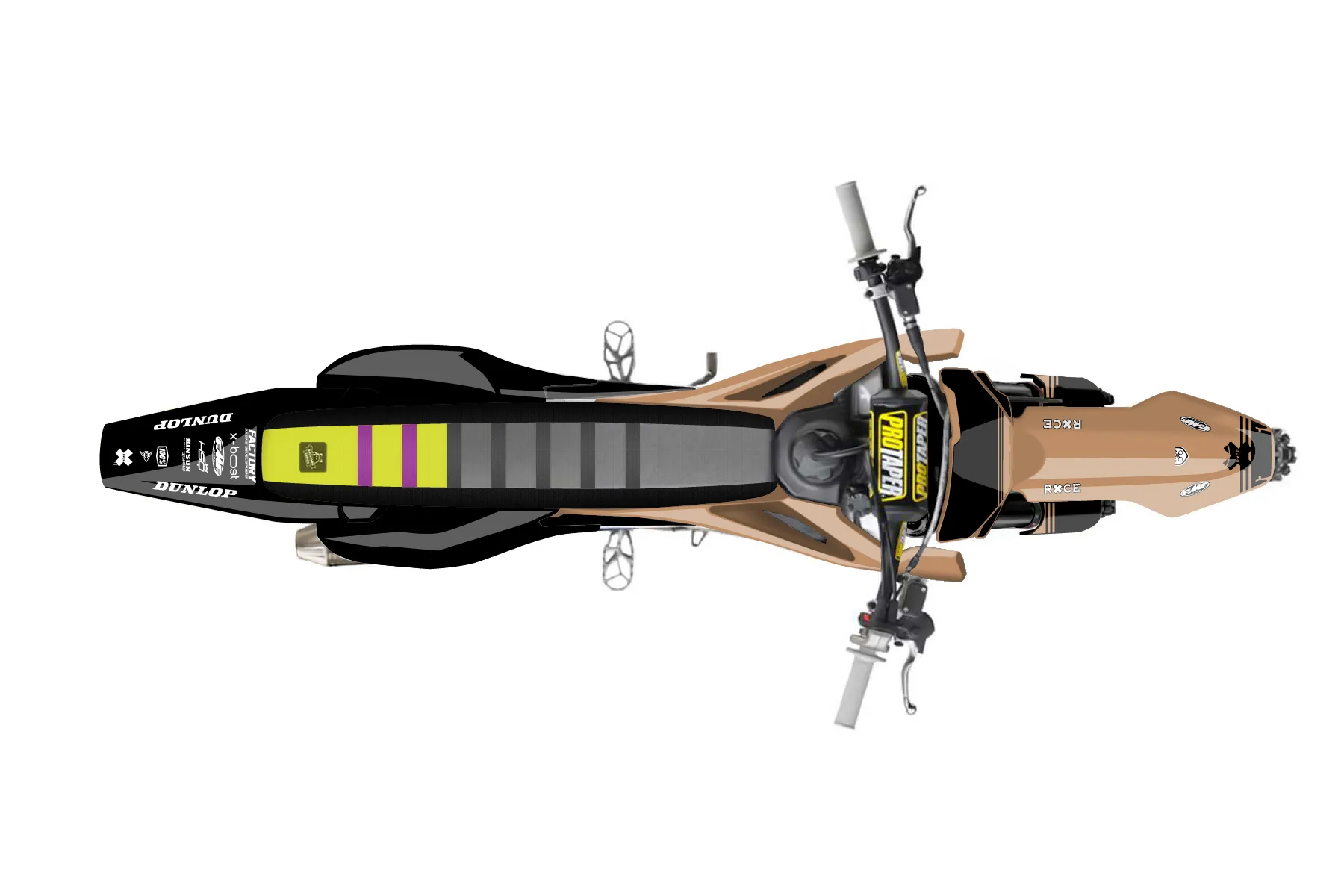«Trademark» — готовый комплект графики серии Untucked для Husqvarna MX Graphic Kit Husqvarna TC50 2019. В комплекте: графика на бак и боковые облицовки, крылья (переднее и заднее), передний щиток, номерные таблички, защита вилки. Материал: ПВХ-винил 80 мкр с холодной ламинацией 300 мкр, общая толщина 380 мкр; покрытие глянцевое или матовое на выбор. Устойчив к UV-излучению, воде, бензину и мойке высокого давления. Клей акриловый на сольвентной основе — постоянный, для гибких пластиков. На простых поверхностях монтируется без нагрева; для сложных изгибов рекомендуем фен. Этот пресет можно заказать как есть или взять за основу в конструкторе: поменять цвета, добавить стартовый номер и свой бренд. Производство — 3–5 рабочих дней, доставка по России СДЭКом или Почтой, по СНГ — курьерскими службами.