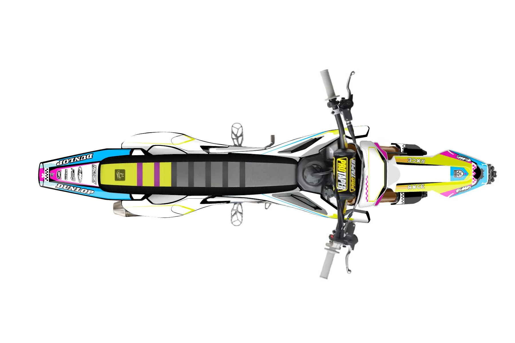 «E Jett 615» — готовый комплект графики серии Staple для Husqvarna MX Graphic Kit Husqvarna TC50 2024. В комплекте: графика на бак и боковые облицовки, крылья (переднее и заднее), передний щиток, номерные таблички, защита вилки. Материал: ПВХ-винил 80 мкр с холодной ламинацией 300 мкр, общая толщина 380 мкр; покрытие глянцевое или матовое на выбор. Устойчив к UV-излучению, воде, бензину и мойке высокого давления. Клей акриловый на сольвентной основе — постоянный, для гибких пластиков. На простых поверхностях монтируется без нагрева; для сложных изгибов рекомендуем фен. Этот пресет можно заказать как есть или взять за основу в конструкторе: поменять цвета, добавить стартовый номер и свой бренд. Производство — 3–5 рабочих дней, доставка по России СДЭКом или Почтой, по СНГ — курьерскими службами.