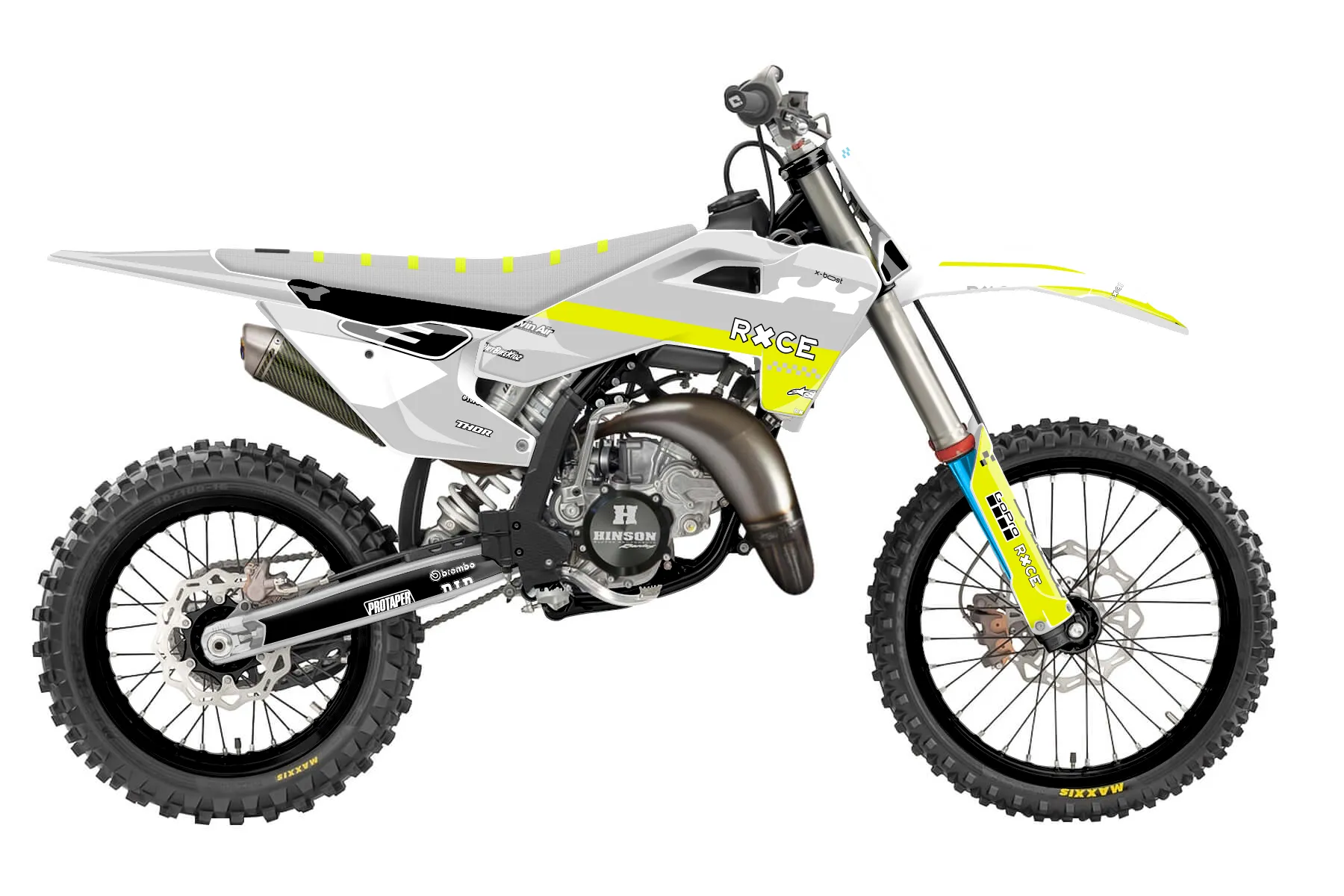 «supermini yellow» — готовый комплект графики серии Staple для Husqvarna MX Graphic Kit Husqvarna TC85 2018. В комплекте: графика на бак и боковые облицовки, крылья (переднее и заднее), передний щиток, номерные таблички, защита вилки. Материал: ПВХ-винил 80 мкр с холодной ламинацией 300 мкр, общая толщина 380 мкр; покрытие глянцевое или матовое на выбор. Устойчив к UV-излучению, воде, бензину и мойке высокого давления. Клей акриловый на сольвентной основе — постоянный, для гибких пластиков. На простых поверхностях монтируется без нагрева; для сложных изгибов рекомендуем фен. Этот пресет можно заказать как есть или взять за основу в конструкторе: поменять цвета, добавить стартовый номер и свой бренд. Производство — 3–5 рабочих дней, доставка по России СДЭКом или Почтой, по СНГ — курьерскими службами.