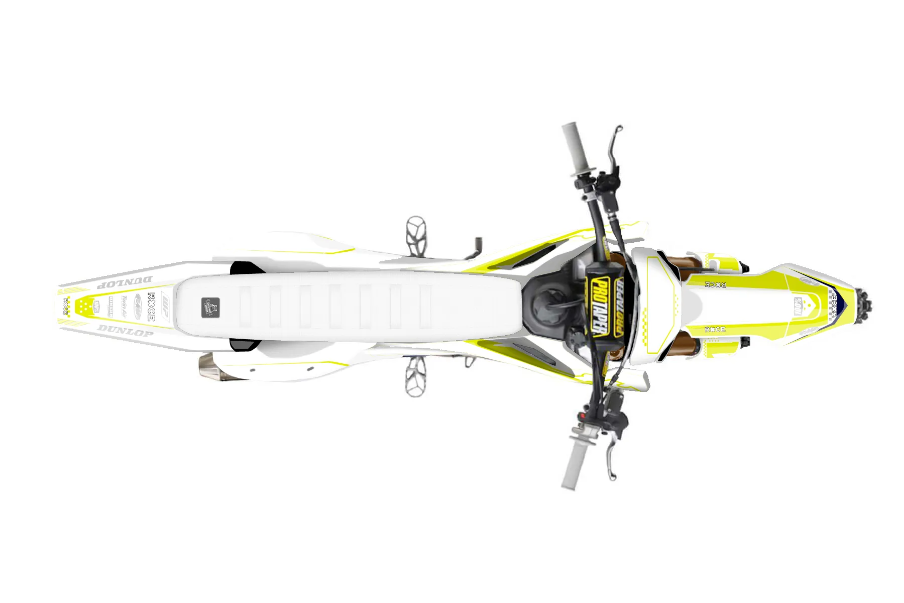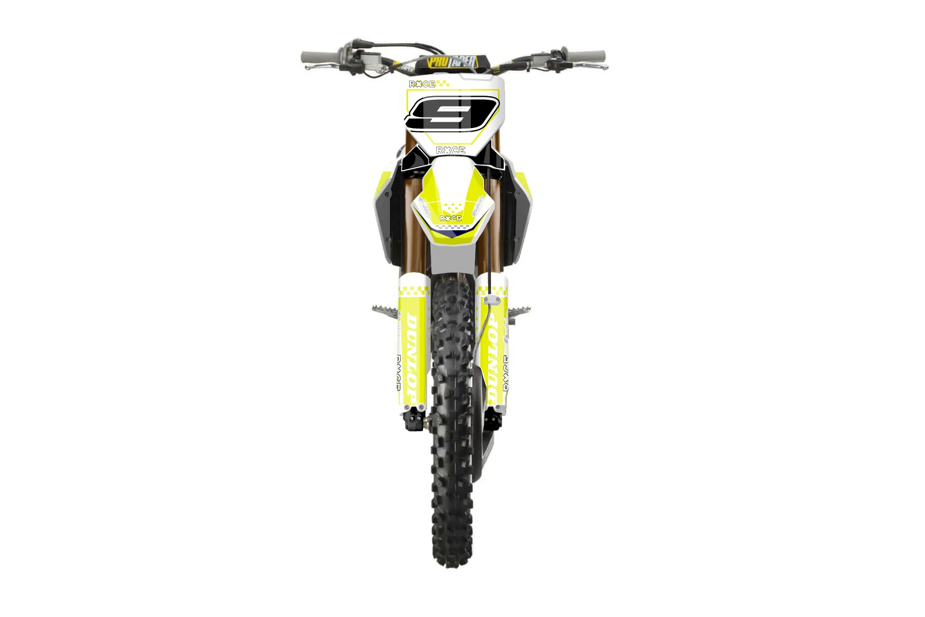 «White and yellow tc» — готовый комплект графики серии Staple для Husqvarna MX Graphic Kit Husqvarna TC85 2018. В комплекте: графика на бак и боковые облицовки, крылья (переднее и заднее), передний щиток, номерные таблички, защита вилки. Материал: ПВХ-винил 80 мкр с холодной ламинацией 300 мкр, общая толщина 380 мкр; покрытие глянцевое или матовое на выбор. Устойчив к UV-излучению, воде, бензину и мойке высокого давления. Клей акриловый на сольвентной основе — постоянный, для гибких пластиков. На простых поверхностях монтируется без нагрева; для сложных изгибов рекомендуем фен. Этот пресет можно заказать как есть или взять за основу в конструкторе: поменять цвета, добавить стартовый номер и свой бренд. Производство — 3–5 рабочих дней, доставка по России СДЭКом или Почтой, по СНГ — курьерскими службами.