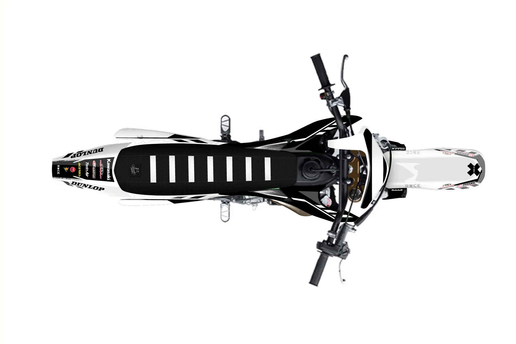 «07 klx 110 888» — готовый комплект графики серии Maverick для Kawasaki Pitbike Graphic Kit Kawasaki KLX 110 2001. В комплекте: графика на бак и боковые облицовки, крылья (переднее и заднее), передний щиток, номерные таблички, защита вилки. Материал: ПВХ-винил 80 мкр с холодной ламинацией 300 мкр, общая толщина 380 мкр; покрытие глянцевое или матовое на выбор. Устойчив к UV-излучению, воде, бензину и мойке высокого давления. Клей акриловый на сольвентной основе — постоянный, для гибких пластиков. На простых поверхностях монтируется без нагрева; для сложных изгибов рекомендуем фен. Этот пресет можно заказать как есть или взять за основу в конструкторе: поменять цвета, добавить стартовый номер и свой бренд. Производство — 3–5 рабочих дней, доставка по России СДЭКом или Почтой, по СНГ — курьерскими службами.