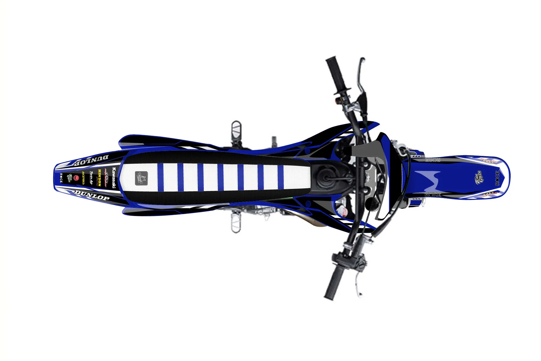 «klx110» — готовый комплект графики серии Maverick для Kawasaki Pitbike Graphic Kit Kawasaki KLX 110 2001. В комплекте: графика на бак и боковые облицовки, крылья (переднее и заднее), передний щиток, номерные таблички, защита вилки. Материал: ПВХ-винил 80 мкр с холодной ламинацией 300 мкр, общая толщина 380 мкр; покрытие глянцевое или матовое на выбор. Устойчив к UV-излучению, воде, бензину и мойке высокого давления. Клей акриловый на сольвентной основе — постоянный, для гибких пластиков. На простых поверхностях монтируется без нагрева; для сложных изгибов рекомендуем фен. Этот пресет можно заказать как есть или взять за основу в конструкторе: поменять цвета, добавить стартовый номер и свой бренд. Производство — 3–5 рабочих дней, доставка по России СДЭКом или Почтой, по СНГ — курьерскими службами.