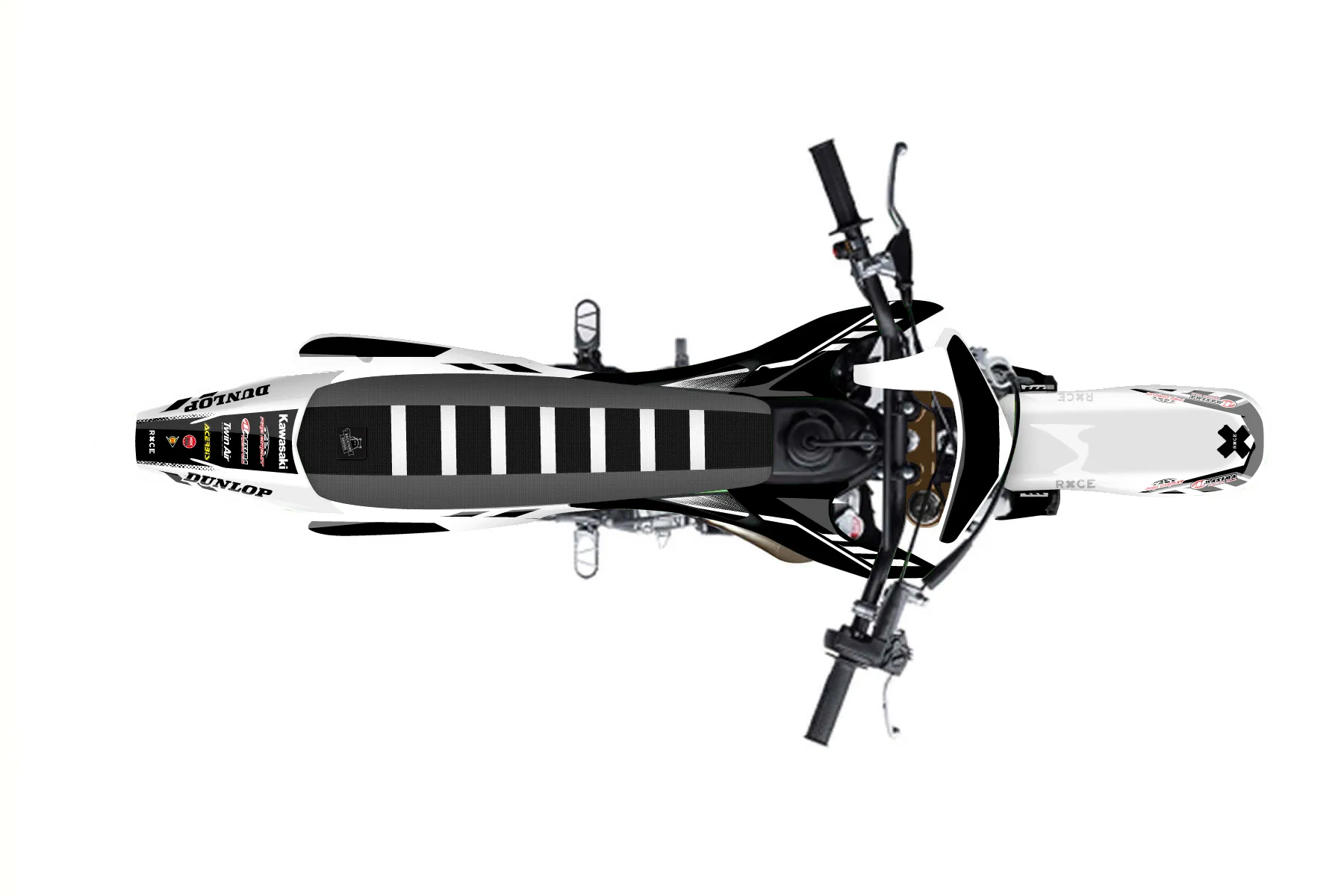 «Pattern» — готовый комплект графики серии Maverick для Kawasaki Pitbike Graphic Kit Kawasaki KLX 110 2001. В комплекте: графика на бак и боковые облицовки, крылья (переднее и заднее), передний щиток, номерные таблички, защита вилки. Материал: ПВХ-винил 80 мкр с холодной ламинацией 300 мкр, общая толщина 380 мкр; покрытие глянцевое или матовое на выбор. Устойчив к UV-излучению, воде, бензину и мойке высокого давления. Клей акриловый на сольвентной основе — постоянный, для гибких пластиков. На простых поверхностях монтируется без нагрева; для сложных изгибов рекомендуем фен. Этот пресет можно заказать как есть или взять за основу в конструкторе: поменять цвета, добавить стартовый номер и свой бренд. Производство — 3–5 рабочих дней, доставка по России СДЭКом или Почтой, по СНГ — курьерскими службами.