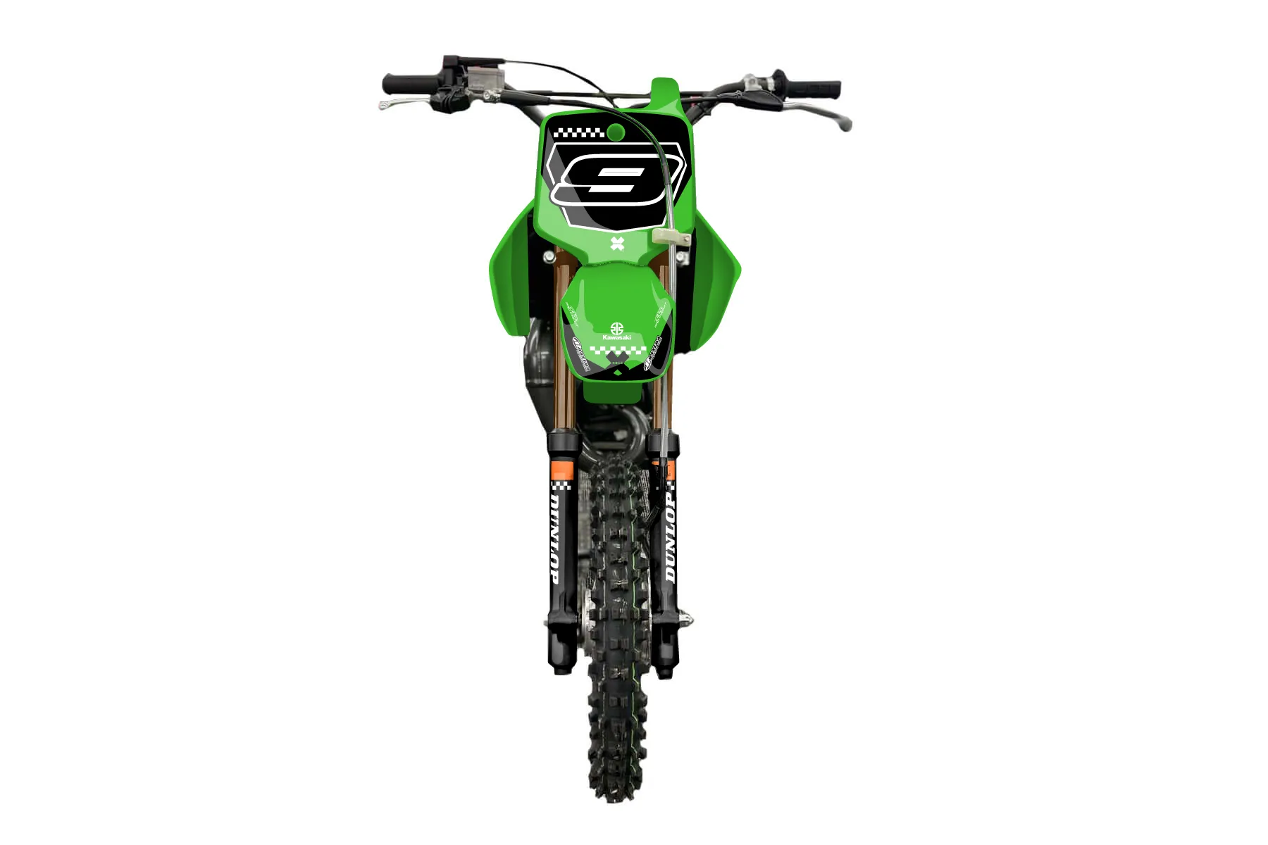 «klx 110» — готовый комплект графики серии Staple для Kawasaki Pitbike Graphic Kit Kawasaki KLX 110 2001. В комплекте: графика на бак и боковые облицовки, крылья (переднее и заднее), передний щиток, номерные таблички, защита вилки. Материал: ПВХ-винил 80 мкр с холодной ламинацией 300 мкр, общая толщина 380 мкр; покрытие глянцевое или матовое на выбор. Устойчив к UV-излучению, воде, бензину и мойке высокого давления. Клей акриловый на сольвентной основе — постоянный, для гибких пластиков. На простых поверхностях монтируется без нагрева; для сложных изгибов рекомендуем фен. Этот пресет можно заказать как есть или взять за основу в конструкторе: поменять цвета, добавить стартовый номер и свой бренд. Производство — 3–5 рабочих дней, доставка по России СДЭКом или Почтой, по СНГ — курьерскими службами.