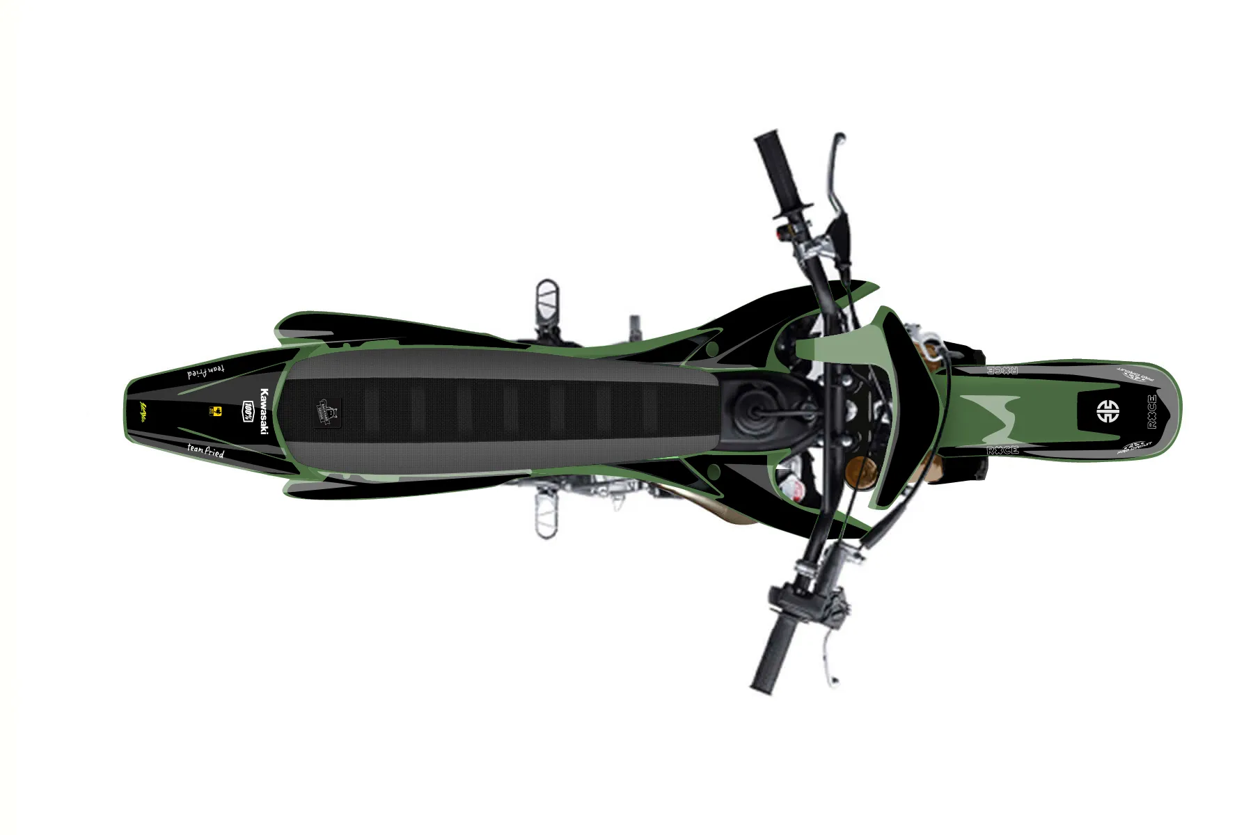 «klx katelyn» — готовый комплект графики серии Staple для Kawasaki Pitbike Graphic Kit Kawasaki KLX 110 2001. В комплекте: графика на бак и боковые облицовки, крылья (переднее и заднее), передний щиток, номерные таблички, защита вилки. Материал: ПВХ-винил 80 мкр с холодной ламинацией 300 мкр, общая толщина 380 мкр; покрытие глянцевое или матовое на выбор. Устойчив к UV-излучению, воде, бензину и мойке высокого давления. Клей акриловый на сольвентной основе — постоянный, для гибких пластиков. На простых поверхностях монтируется без нагрева; для сложных изгибов рекомендуем фен. Этот пресет можно заказать как есть или взять за основу в конструкторе: поменять цвета, добавить стартовый номер и свой бренд. Производство — 3–5 рабочих дней, доставка по России СДЭКом или Почтой, по СНГ — курьерскими службами.