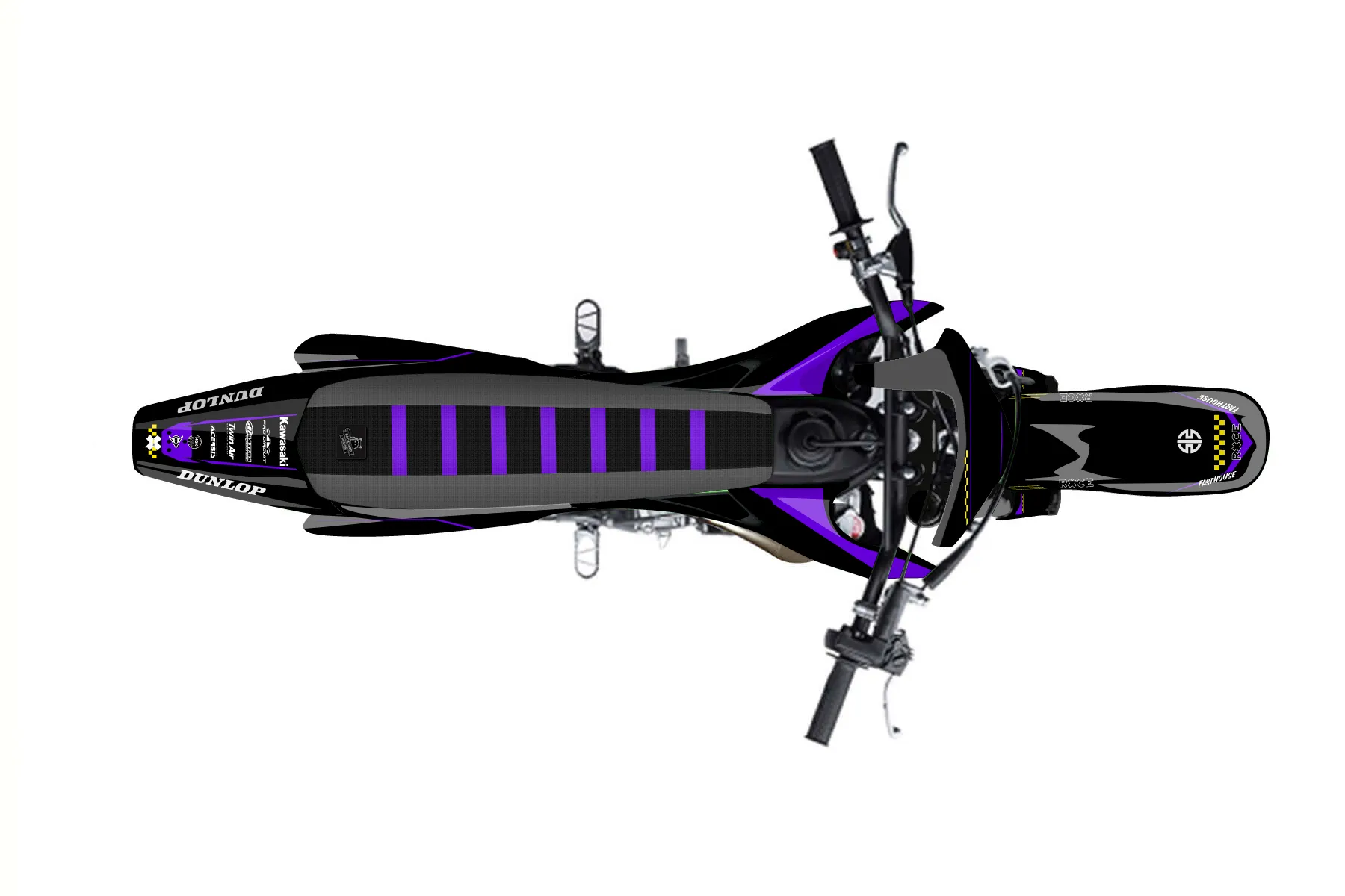 «Trait» — готовый комплект графики серии Staple для Kawasaki Pitbike Graphic Kit Kawasaki KLX 110 2001. В комплекте: графика на бак и боковые облицовки, крылья (переднее и заднее), передний щиток, номерные таблички, защита вилки. Материал: ПВХ-винил 80 мкр с холодной ламинацией 300 мкр, общая толщина 380 мкр; покрытие глянцевое или матовое на выбор. Устойчив к UV-излучению, воде, бензину и мойке высокого давления. Клей акриловый на сольвентной основе — постоянный, для гибких пластиков. На простых поверхностях монтируется без нагрева; для сложных изгибов рекомендуем фен. Этот пресет можно заказать как есть или взять за основу в конструкторе: поменять цвета, добавить стартовый номер и свой бренд. Производство — 3–5 рабочих дней, доставка по России СДЭКом или Почтой, по СНГ — курьерскими службами.