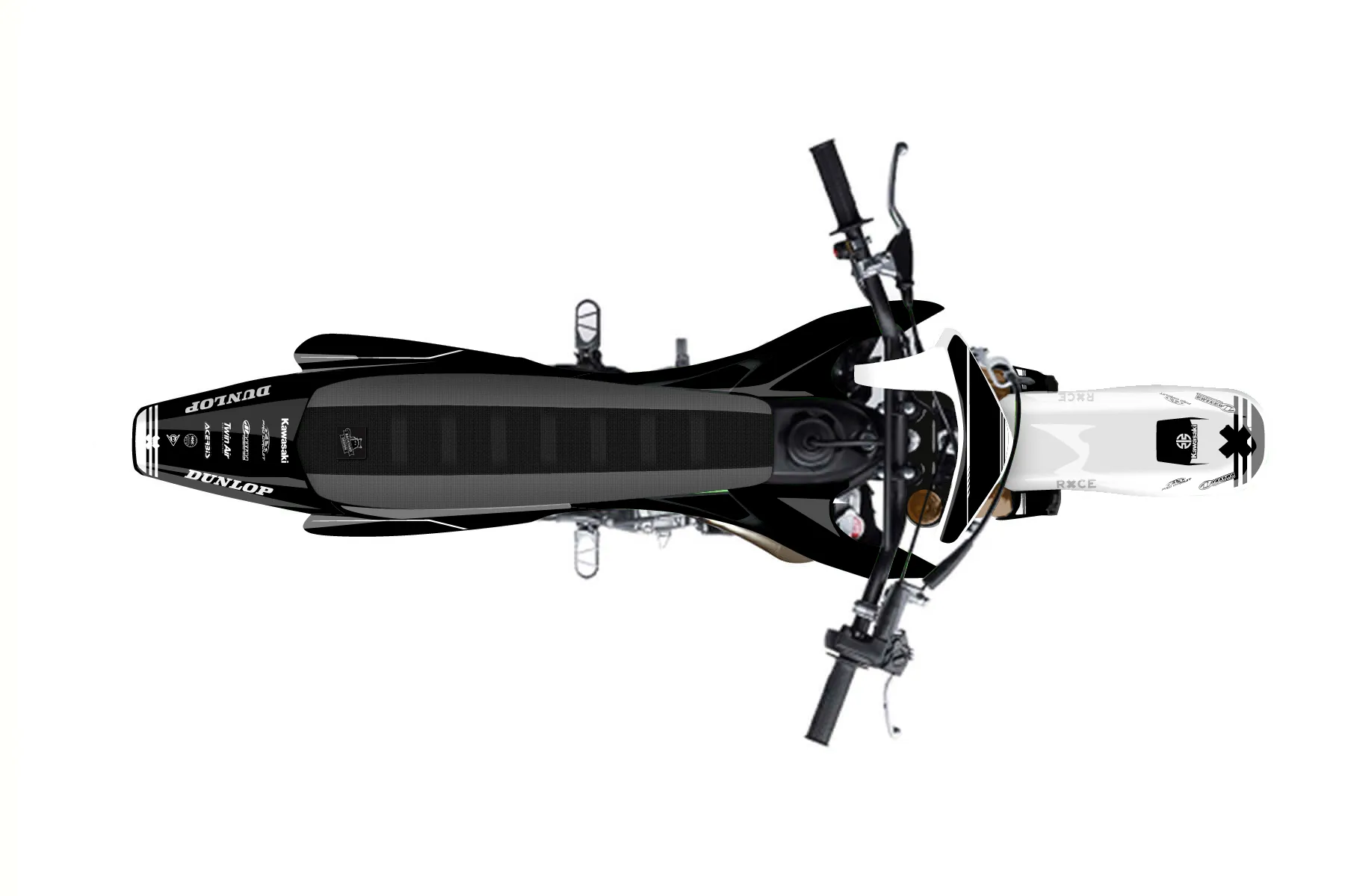 «Trademark» — готовый комплект графики серии Untucked для Kawasaki Pitbike Graphic Kit Kawasaki KLX 110 2001. В комплекте: графика на бак и боковые облицовки, крылья (переднее и заднее), передний щиток, номерные таблички, защита вилки. Материал: ПВХ-винил 80 мкр с холодной ламинацией 300 мкр, общая толщина 380 мкр; покрытие глянцевое или матовое на выбор. Устойчив к UV-излучению, воде, бензину и мойке высокого давления. Клей акриловый на сольвентной основе — постоянный, для гибких пластиков. На простых поверхностях монтируется без нагрева; для сложных изгибов рекомендуем фен. Этот пресет можно заказать как есть или взять за основу в конструкторе: поменять цвета, добавить стартовый номер и свой бренд. Производство — 3–5 рабочих дней, доставка по России СДЭКом или Почтой, по СНГ — курьерскими службами.