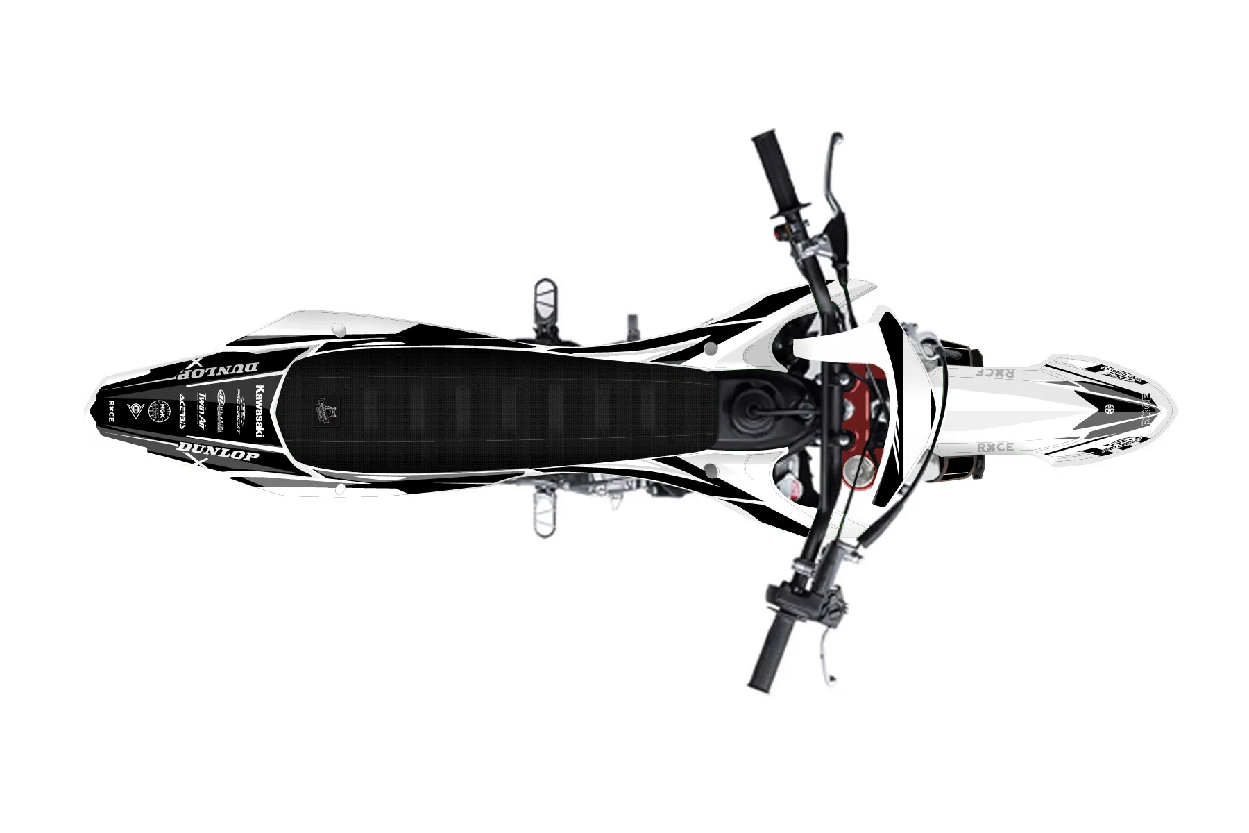 «Rutted» — готовый комплект графики серии Maverick для Kawasaki MX Graphic Kit Kawasaki KX 100 2014. В комплекте: графика на бак и боковые облицовки, крылья (переднее и заднее), передний щиток, номерные таблички, защита вилки. Материал: ПВХ-винил 80 мкр с холодной ламинацией 300 мкр, общая толщина 380 мкр; покрытие глянцевое или матовое на выбор. Устойчив к UV-излучению, воде, бензину и мойке высокого давления. Клей акриловый на сольвентной основе — постоянный, для гибких пластиков. На простых поверхностях монтируется без нагрева; для сложных изгибов рекомендуем фен. Этот пресет можно заказать как есть или взять за основу в конструкторе: поменять цвета, добавить стартовый номер и свой бренд. Производство — 3–5 рабочих дней, доставка по России СДЭКом или Почтой, по СНГ — курьерскими службами.