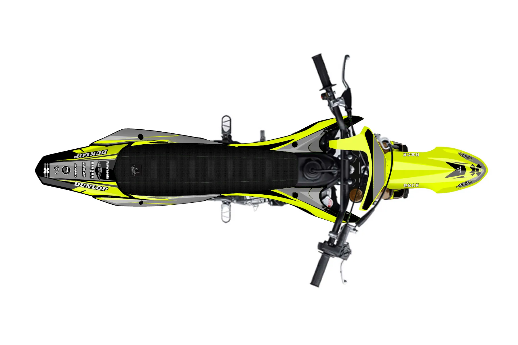 «Stripes Neon» — готовый комплект графики серии Untucked для Kawasaki MX Graphic Kit Kawasaki KX 100 2014. В комплекте: графика на бак и боковые облицовки, крылья (переднее и заднее), передний щиток, номерные таблички, защита вилки. Материал: ПВХ-винил 80 мкр с холодной ламинацией 300 мкр, общая толщина 380 мкр; покрытие глянцевое или матовое на выбор. Устойчив к UV-излучению, воде, бензину и мойке высокого давления. Клей акриловый на сольвентной основе — постоянный, для гибких пластиков. На простых поверхностях монтируется без нагрева; для сложных изгибов рекомендуем фен. Этот пресет можно заказать как есть или взять за основу в конструкторе: поменять цвета, добавить стартовый номер и свой бренд. Производство — 3–5 рабочих дней, доставка по России СДЭКом или Почтой, по СНГ — курьерскими службами.