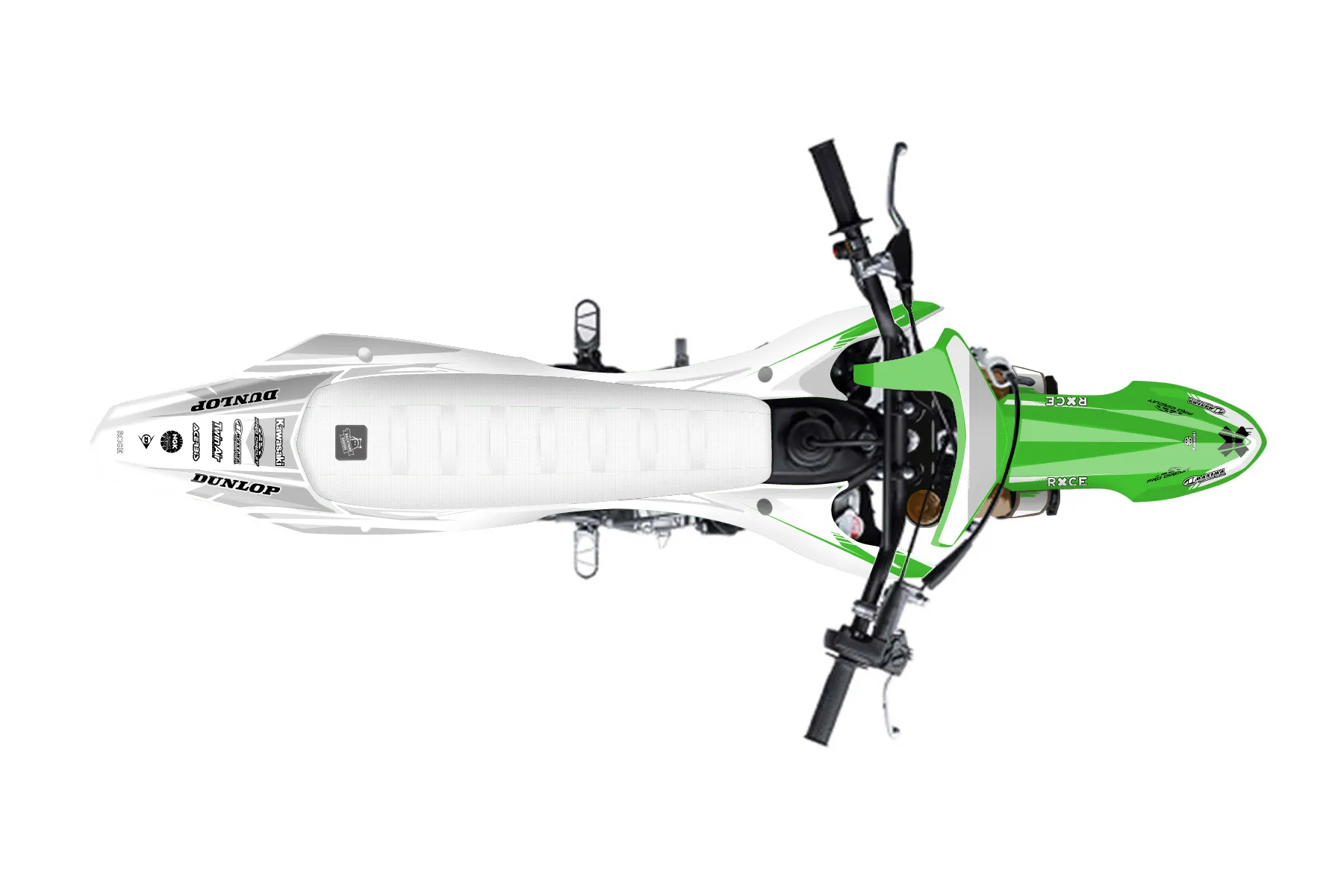 «Tropical» — готовый комплект графики серии Untucked для Kawasaki MX Graphic Kit Kawasaki KX 100 2014. В комплекте: графика на бак и боковые облицовки, крылья (переднее и заднее), передний щиток, номерные таблички, защита вилки. Материал: ПВХ-винил 80 мкр с холодной ламинацией 300 мкр, общая толщина 380 мкр; покрытие глянцевое или матовое на выбор. Устойчив к UV-излучению, воде, бензину и мойке высокого давления. Клей акриловый на сольвентной основе — постоянный, для гибких пластиков. На простых поверхностях монтируется без нагрева; для сложных изгибов рекомендуем фен. Этот пресет можно заказать как есть или взять за основу в конструкторе: поменять цвета, добавить стартовый номер и свой бренд. Производство — 3–5 рабочих дней, доставка по России СДЭКом или Почтой, по СНГ — курьерскими службами.