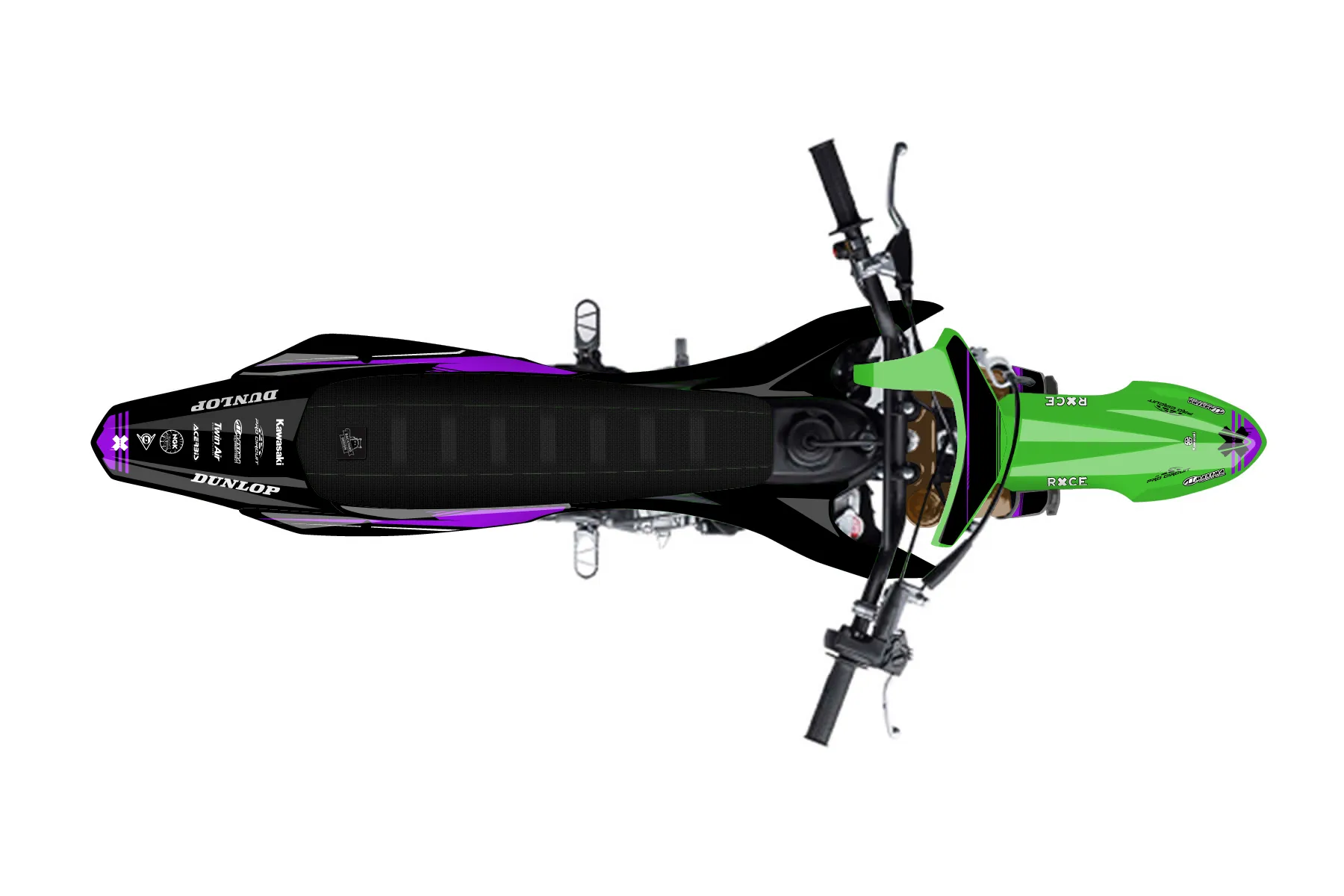 «Race» — готовый комплект графики серии Untucked для Kawasaki MX Graphic Kit Kawasaki KX 112 2022. В комплекте: графика на бак и боковые облицовки, крылья (переднее и заднее), передний щиток, номерные таблички, защита вилки. Материал: ПВХ-винил 80 мкр с холодной ламинацией 300 мкр, общая толщина 380 мкр; покрытие глянцевое или матовое на выбор. Устойчив к UV-излучению, воде, бензину и мойке высокого давления. Клей акриловый на сольвентной основе — постоянный, для гибких пластиков. На простых поверхностях монтируется без нагрева; для сложных изгибов рекомендуем фен. Этот пресет можно заказать как есть или взять за основу в конструкторе: поменять цвета, добавить стартовый номер и свой бренд. Производство — 3–5 рабочих дней, доставка по России СДЭКом или Почтой, по СНГ — курьерскими службами.