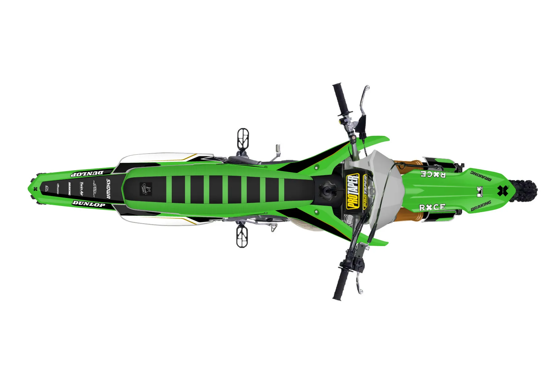 «Alpha» — готовый комплект графики серии Flow для Kawasaki MX Graphic Kit Kawasaki KX 125 Restyle 2003. В комплекте: графика на бак и боковые облицовки, крылья (переднее и заднее), передний щиток, номерные таблички, защита вилки. Материал: ПВХ-винил 80 мкр с холодной ламинацией 300 мкр, общая толщина 380 мкр; покрытие глянцевое или матовое на выбор. Устойчив к UV-излучению, воде, бензину и мойке высокого давления. Клей акриловый на сольвентной основе — постоянный, для гибких пластиков. На простых поверхностях монтируется без нагрева; для сложных изгибов рекомендуем фен. Этот пресет можно заказать как есть или взять за основу в конструкторе: поменять цвета, добавить стартовый номер и свой бренд. Производство — 3–5 рабочих дней, доставка по России СДЭКом или Почтой, по СНГ — курьерскими службами.