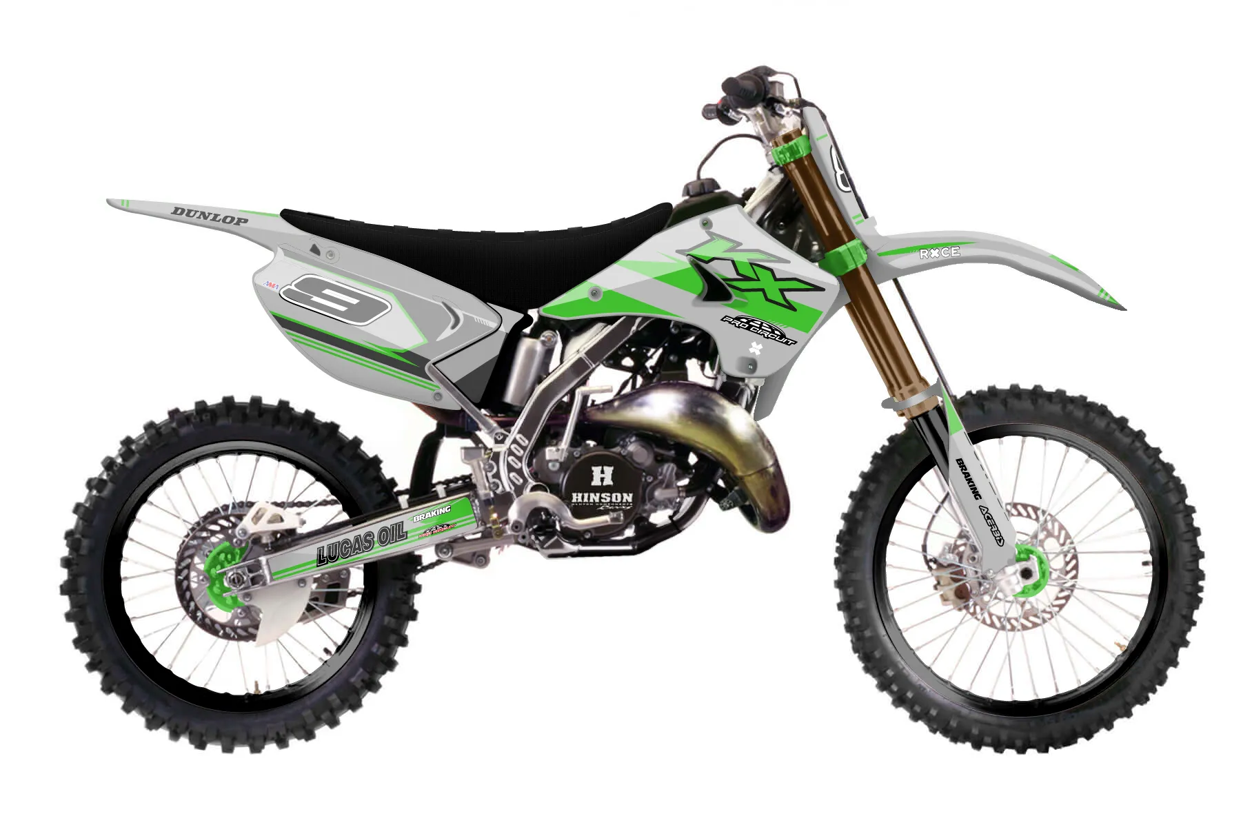 «grey kx» — готовый комплект графики серии Untucked для Kawasaki MX Graphic Kit Kawasaki KX 125 2003. В комплекте: графика на бак и боковые облицовки, крылья (переднее и заднее), передний щиток, номерные таблички, защита вилки. Материал: ПВХ-винил 80 мкр с холодной ламинацией 300 мкр, общая толщина 380 мкр; покрытие глянцевое или матовое на выбор. Устойчив к UV-излучению, воде, бензину и мойке высокого давления. Клей акриловый на сольвентной основе — постоянный, для гибких пластиков. На простых поверхностях монтируется без нагрева; для сложных изгибов рекомендуем фен. Этот пресет можно заказать как есть или взять за основу в конструкторе: поменять цвета, добавить стартовый номер и свой бренд. Производство — 3–5 рабочих дней, доставка по России СДЭКом или Почтой, по СНГ — курьерскими службами.