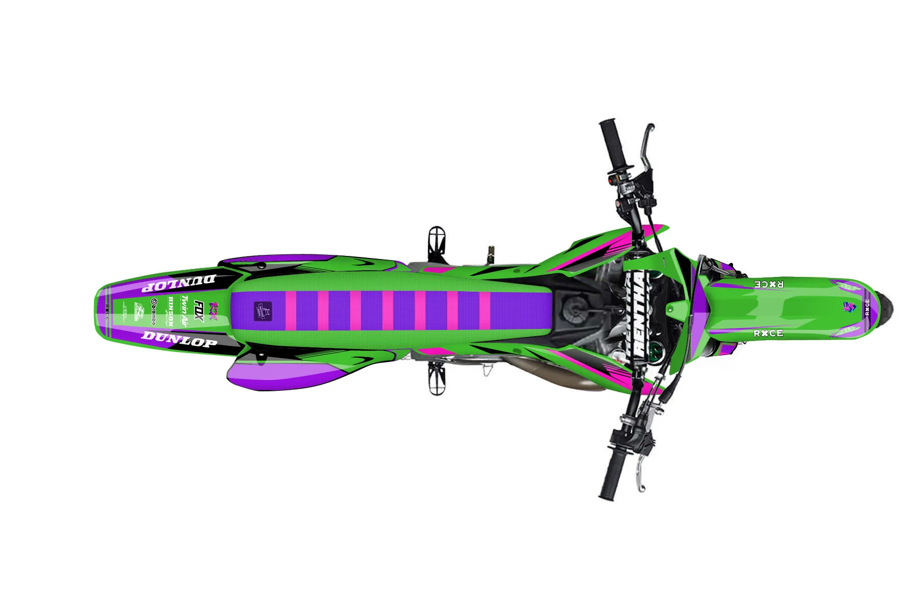 «Kx 125» — готовый комплект графики серии Untucked для Kawasaki MX Graphic Kit Kawasaki KX 125 2003. В комплекте: графика на бак и боковые облицовки, крылья (переднее и заднее), передний щиток, номерные таблички, защита вилки. Материал: ПВХ-винил 80 мкр с холодной ламинацией 300 мкр, общая толщина 380 мкр; покрытие глянцевое или матовое на выбор. Устойчив к UV-излучению, воде, бензину и мойке высокого давления. Клей акриловый на сольвентной основе — постоянный, для гибких пластиков. На простых поверхностях монтируется без нагрева; для сложных изгибов рекомендуем фен. Этот пресет можно заказать как есть или взять за основу в конструкторе: поменять цвета, добавить стартовый номер и свой бренд. Производство — 3–5 рабочих дней, доставка по России СДЭКом или Почтой, по СНГ — курьерскими службами.