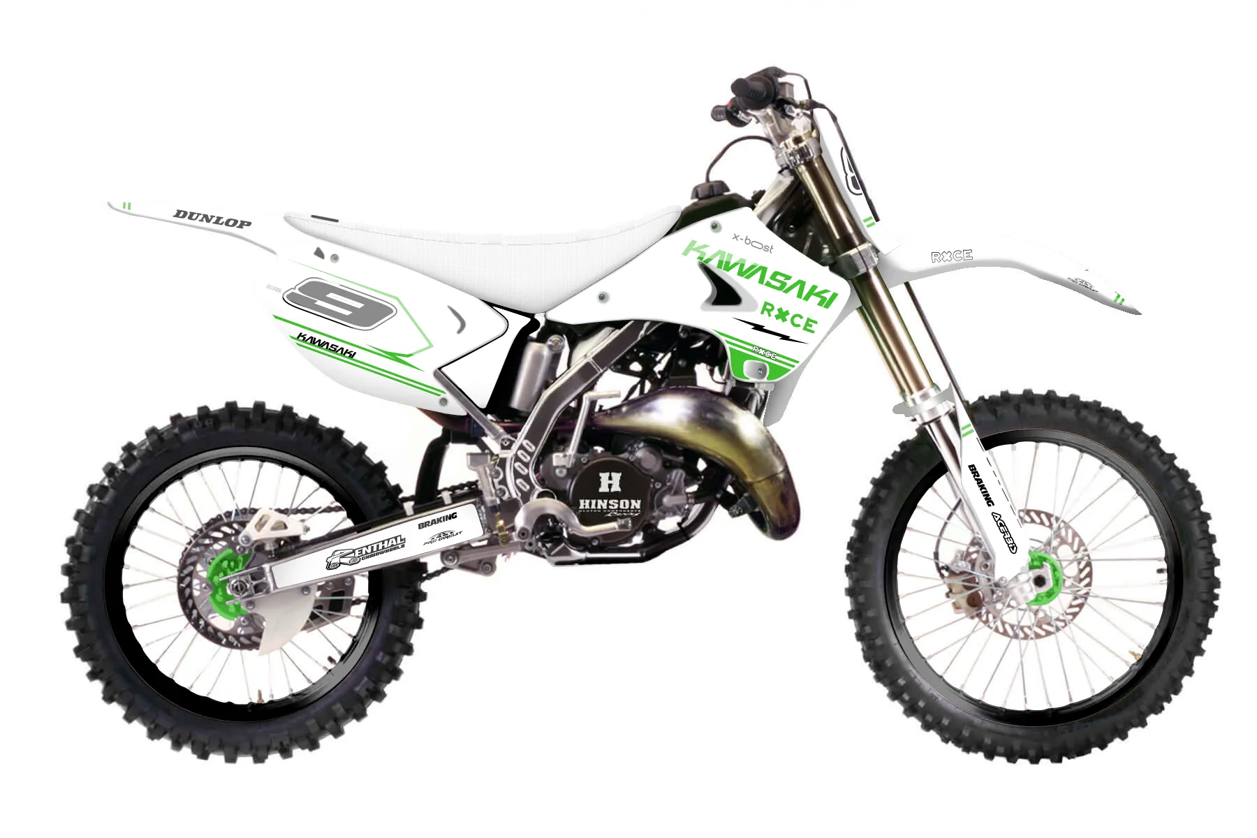 «Vector» — готовый комплект графики серии Untucked для Kawasaki MX Graphic Kit Kawasaki KX 125 2003. В комплекте: графика на бак и боковые облицовки, крылья (переднее и заднее), передний щиток, номерные таблички, защита вилки. Материал: ПВХ-винил 80 мкр с холодной ламинацией 300 мкр, общая толщина 380 мкр; покрытие глянцевое или матовое на выбор. Устойчив к UV-излучению, воде, бензину и мойке высокого давления. Клей акриловый на сольвентной основе — постоянный, для гибких пластиков. На простых поверхностях монтируется без нагрева; для сложных изгибов рекомендуем фен. Этот пресет можно заказать как есть или взять за основу в конструкторе: поменять цвета, добавить стартовый номер и свой бренд. Производство — 3–5 рабочих дней, доставка по России СДЭКом или Почтой, по СНГ — курьерскими службами.