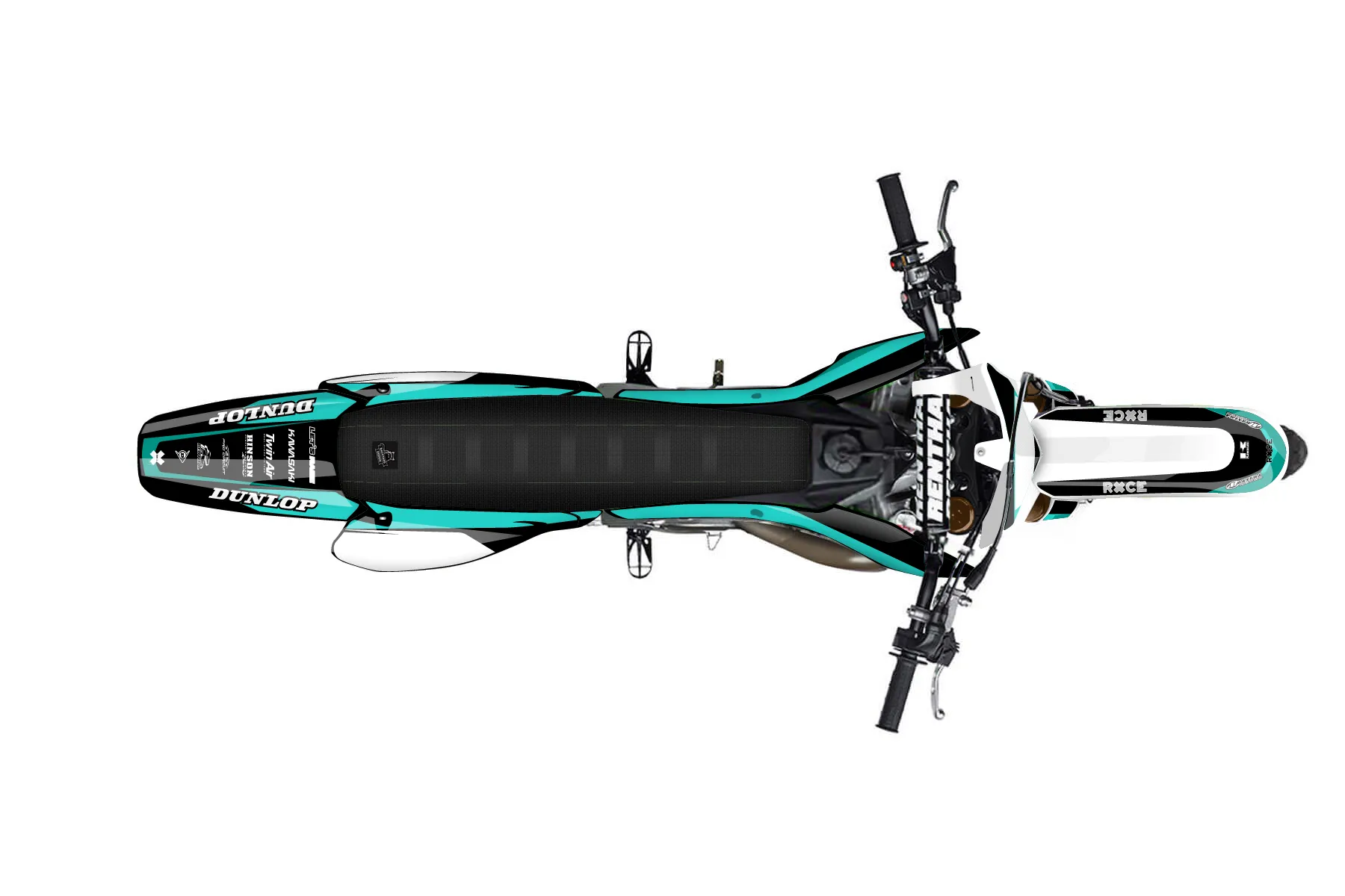 «Trait» — готовый комплект графики серии Flow для Kawasaki MX Graphic Kit Kawasaki KX 125 2004. В комплекте: графика на бак и боковые облицовки, крылья (переднее и заднее), передний щиток, номерные таблички, защита вилки. Материал: ПВХ-винил 80 мкр с холодной ламинацией 300 мкр, общая толщина 380 мкр; покрытие глянцевое или матовое на выбор. Устойчив к UV-излучению, воде, бензину и мойке высокого давления. Клей акриловый на сольвентной основе — постоянный, для гибких пластиков. На простых поверхностях монтируется без нагрева; для сложных изгибов рекомендуем фен. Этот пресет можно заказать как есть или взять за основу в конструкторе: поменять цвета, добавить стартовый номер и свой бренд. Производство — 3–5 рабочих дней, доставка по России СДЭКом или Почтой, по СНГ — курьерскими службами.