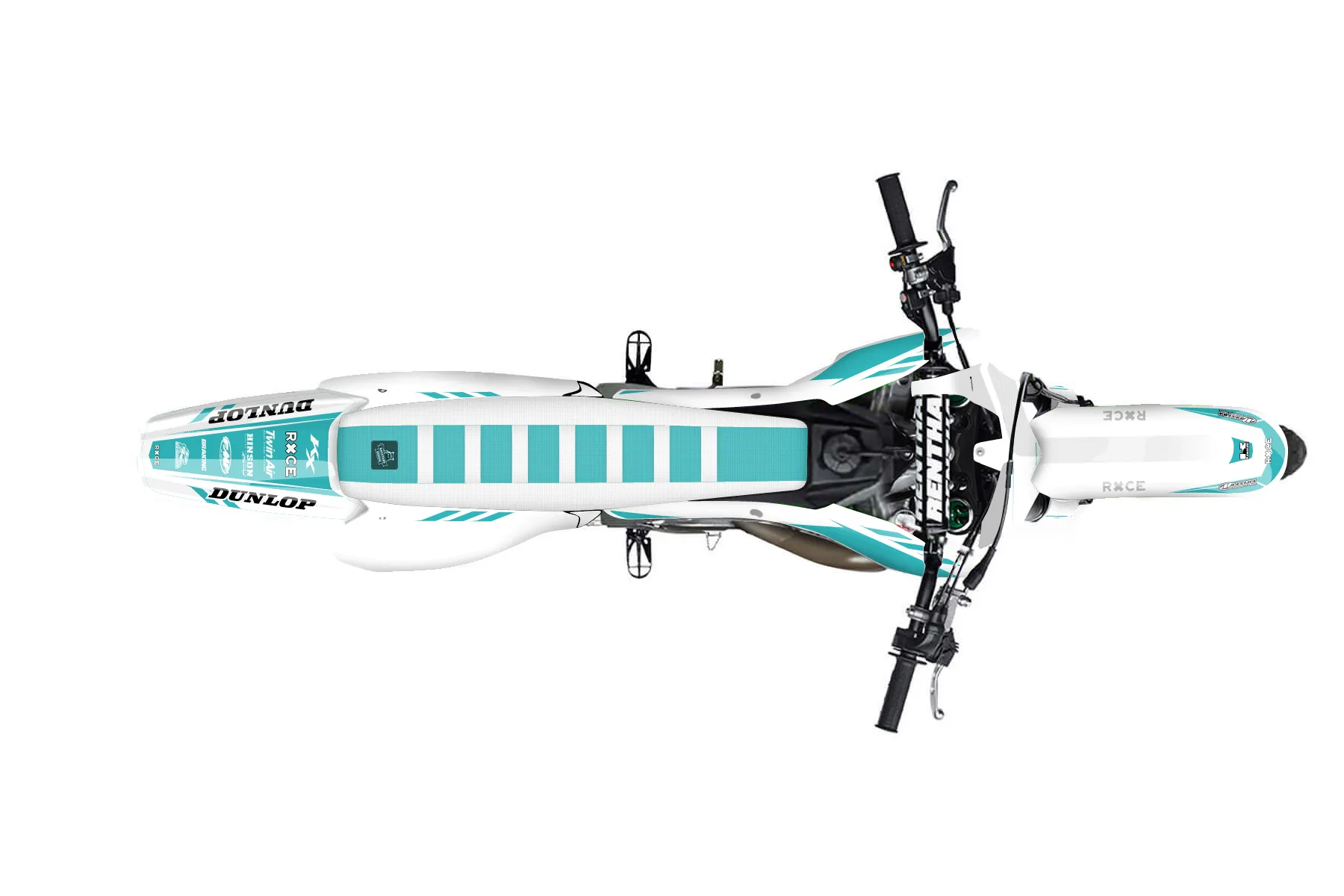 «Alpha» — готовый комплект графики серии Maverick для Kawasaki MX Graphic Kit Kawasaki KX 125 2004. В комплекте: графика на бак и боковые облицовки, крылья (переднее и заднее), передний щиток, номерные таблички, защита вилки. Материал: ПВХ-винил 80 мкр с холодной ламинацией 300 мкр, общая толщина 380 мкр; покрытие глянцевое или матовое на выбор. Устойчив к UV-излучению, воде, бензину и мойке высокого давления. Клей акриловый на сольвентной основе — постоянный, для гибких пластиков. На простых поверхностях монтируется без нагрева; для сложных изгибов рекомендуем фен. Этот пресет можно заказать как есть или взять за основу в конструкторе: поменять цвета, добавить стартовый номер и свой бренд. Производство — 3–5 рабочих дней, доставка по России СДЭКом или Почтой, по СНГ — курьерскими службами.