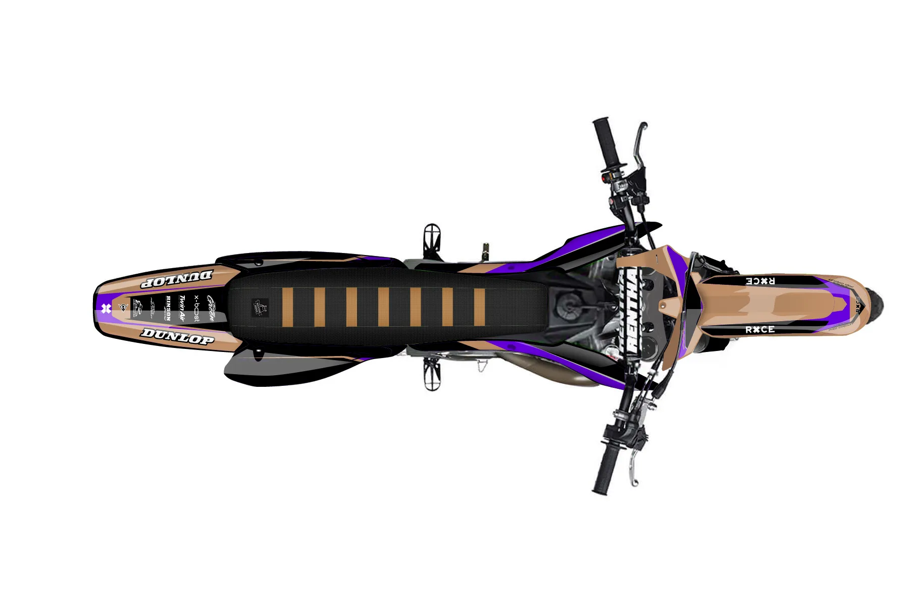«CustomDesign1» — готовый комплект графики серии Staple для Kawasaki MX Graphic Kit Kawasaki KX 125 2004. В комплекте: графика на бак и боковые облицовки, крылья (переднее и заднее), передний щиток, номерные таблички, защита вилки. Материал: ПВХ-винил 80 мкр с холодной ламинацией 300 мкр, общая толщина 380 мкр; покрытие глянцевое или матовое на выбор. Устойчив к UV-излучению, воде, бензину и мойке высокого давления. Клей акриловый на сольвентной основе — постоянный, для гибких пластиков. На простых поверхностях монтируется без нагрева; для сложных изгибов рекомендуем фен. Этот пресет можно заказать как есть или взять за основу в конструкторе: поменять цвета, добавить стартовый номер и свой бренд. Производство — 3–5 рабочих дней, доставка по России СДЭКом или Почтой, по СНГ — курьерскими службами.