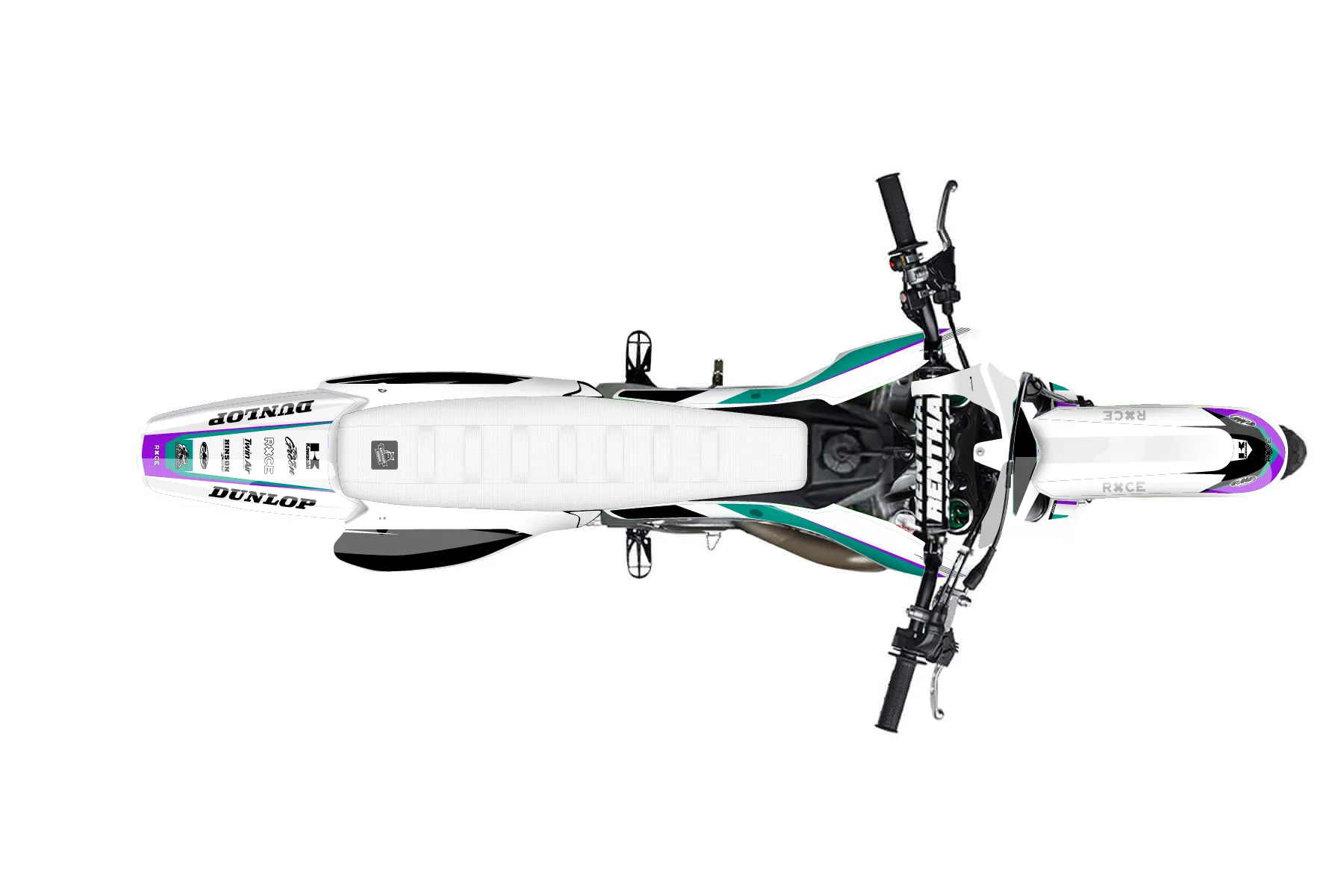 «Signature» — готовый комплект графики серии Staple для Kawasaki MX Graphic Kit Kawasaki KX 125 2004. В комплекте: графика на бак и боковые облицовки, крылья (переднее и заднее), передний щиток, номерные таблички, защита вилки. Материал: ПВХ-винил 80 мкр с холодной ламинацией 300 мкр, общая толщина 380 мкр; покрытие глянцевое или матовое на выбор. Устойчив к UV-излучению, воде, бензину и мойке высокого давления. Клей акриловый на сольвентной основе — постоянный, для гибких пластиков. На простых поверхностях монтируется без нагрева; для сложных изгибов рекомендуем фен. Этот пресет можно заказать как есть или взять за основу в конструкторе: поменять цвета, добавить стартовый номер и свой бренд. Производство — 3–5 рабочих дней, доставка по России СДЭКом или Почтой, по СНГ — курьерскими службами.
