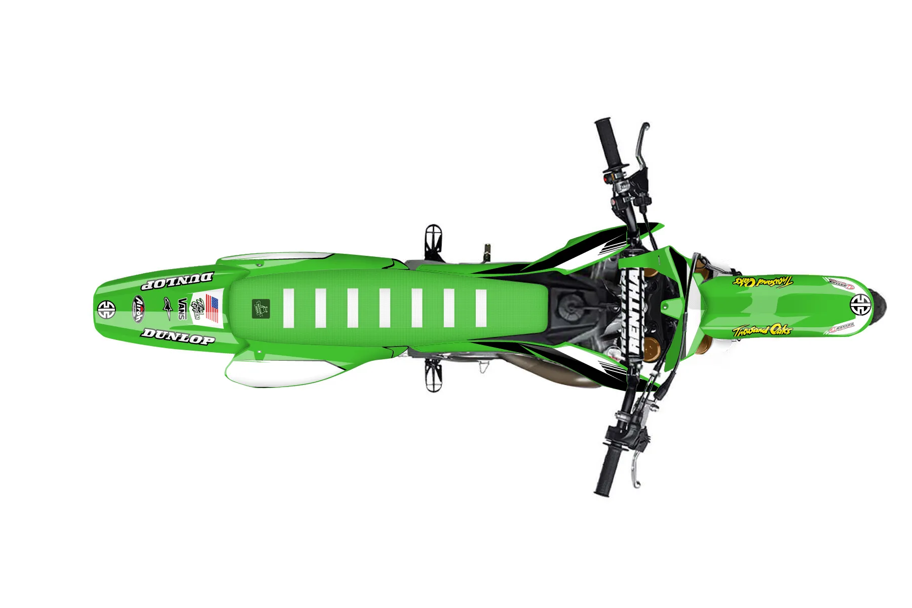«DreamDesignKX125» — готовый комплект графики серии Untucked для Kawasaki MX Graphic Kit Kawasaki KX 125 2004. В комплекте: графика на бак и боковые облицовки, крылья (переднее и заднее), передний щиток, номерные таблички, защита вилки. Материал: ПВХ-винил 80 мкр с холодной ламинацией 300 мкр, общая толщина 380 мкр; покрытие глянцевое или матовое на выбор. Устойчив к UV-излучению, воде, бензину и мойке высокого давления. Клей акриловый на сольвентной основе — постоянный, для гибких пластиков. На простых поверхностях монтируется без нагрева; для сложных изгибов рекомендуем фен. Этот пресет можно заказать как есть или взять за основу в конструкторе: поменять цвета, добавить стартовый номер и свой бренд. Производство — 3–5 рабочих дней, доставка по России СДЭКом или Почтой, по СНГ — курьерскими службами.