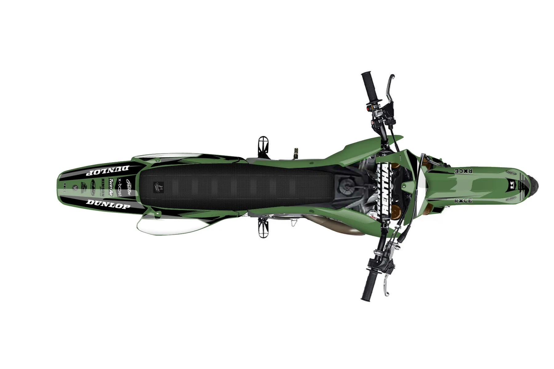 «Form» — готовый комплект графики серии Untucked для Kawasaki MX Graphic Kit Kawasaki KX 125 2004. В комплекте: графика на бак и боковые облицовки, крылья (переднее и заднее), передний щиток, номерные таблички, защита вилки. Материал: ПВХ-винил 80 мкр с холодной ламинацией 300 мкр, общая толщина 380 мкр; покрытие глянцевое или матовое на выбор. Устойчив к UV-излучению, воде, бензину и мойке высокого давления. Клей акриловый на сольвентной основе — постоянный, для гибких пластиков. На простых поверхностях монтируется без нагрева; для сложных изгибов рекомендуем фен. Этот пресет можно заказать как есть или взять за основу в конструкторе: поменять цвета, добавить стартовый номер и свой бренд. Производство — 3–5 рабочих дней, доставка по России СДЭКом или Почтой, по СНГ — курьерскими службами.
