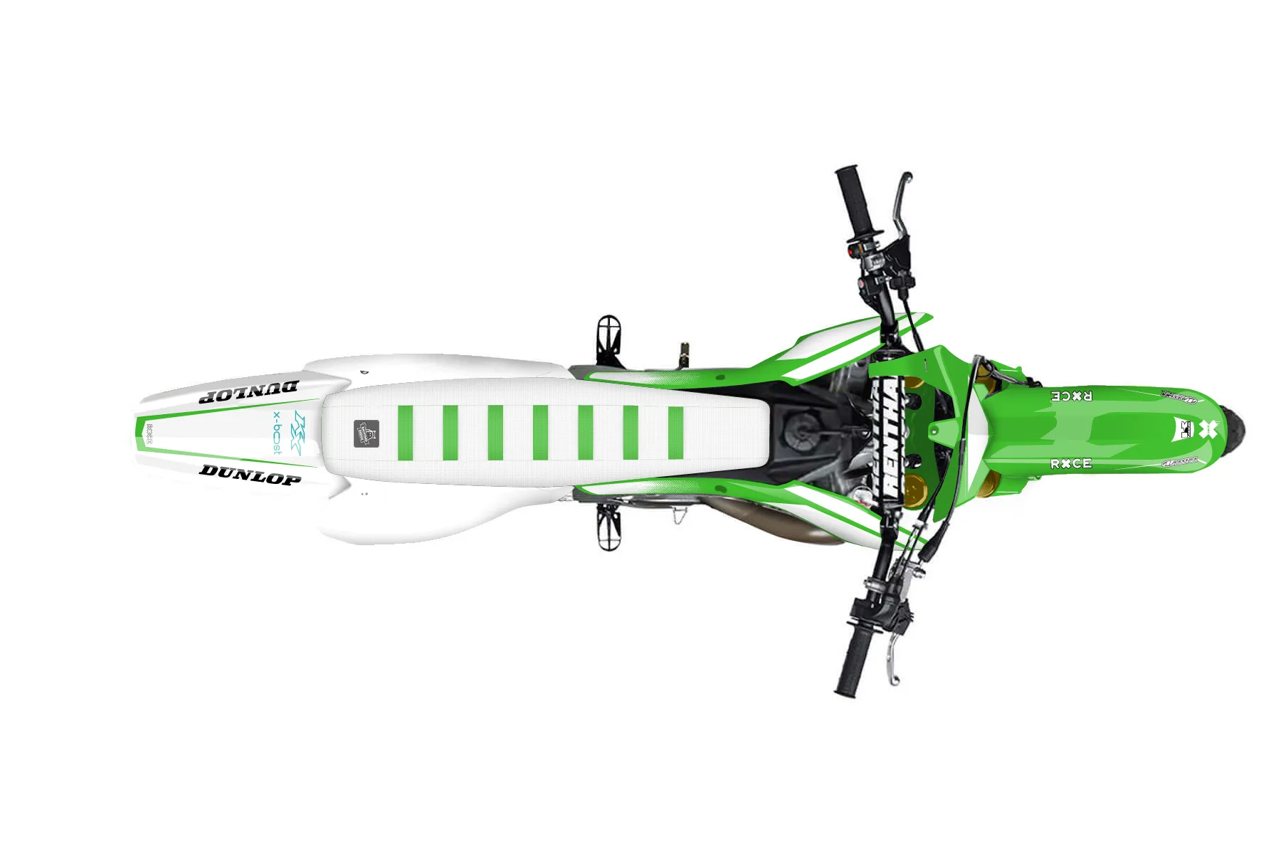 «CustomDesignKX1» — готовый комплект графики серии Maverick для Kawasaki MX Graphic Kit Kawasaki KX 250 2004. В комплекте: графика на бак и боковые облицовки, крылья (переднее и заднее), передний щиток, номерные таблички, защита вилки. Материал: ПВХ-винил 80 мкр с холодной ламинацией 300 мкр, общая толщина 380 мкр; покрытие глянцевое или матовое на выбор. Устойчив к UV-излучению, воде, бензину и мойке высокого давления. Клей акриловый на сольвентной основе — постоянный, для гибких пластиков. На простых поверхностях монтируется без нагрева; для сложных изгибов рекомендуем фен. Этот пресет можно заказать как есть или взять за основу в конструкторе: поменять цвета, добавить стартовый номер и свой бренд. Производство — 3–5 рабочих дней, доставка по России СДЭКом или Почтой, по СНГ — курьерскими службами.