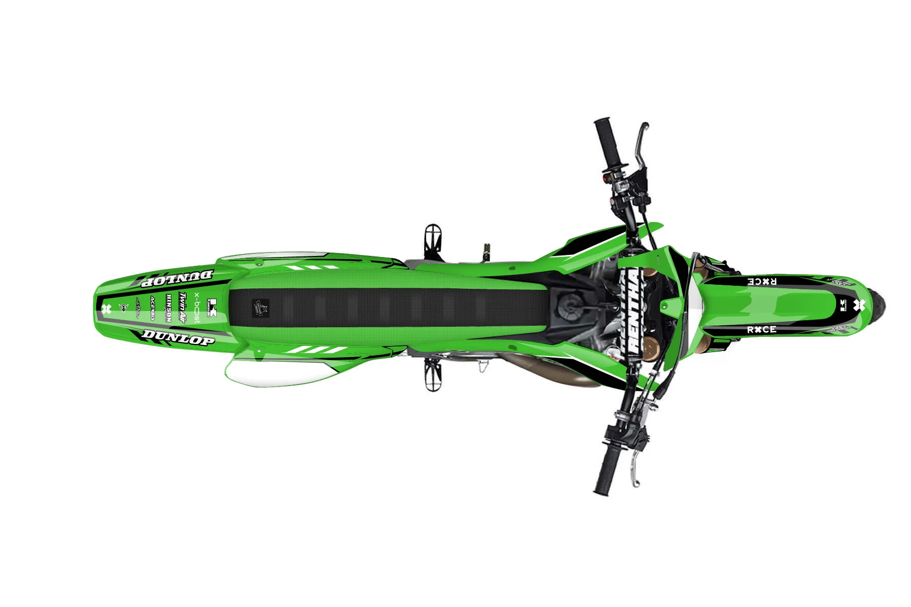«CustomDesign» — готовый комплект графики серии Maverick для Kawasaki MX Graphic Kit Kawasaki KX 250 2005. В комплекте: графика на бак и боковые облицовки, крылья (переднее и заднее), передний щиток, номерные таблички, защита вилки. Материал: ПВХ-винил 80 мкр с холодной ламинацией 300 мкр, общая толщина 380 мкр; покрытие глянцевое или матовое на выбор. Устойчив к UV-излучению, воде, бензину и мойке высокого давления. Клей акриловый на сольвентной основе — постоянный, для гибких пластиков. На простых поверхностях монтируется без нагрева; для сложных изгибов рекомендуем фен. Этот пресет можно заказать как есть или взять за основу в конструкторе: поменять цвета, добавить стартовый номер и свой бренд. Производство — 3–5 рабочих дней, доставка по России СДЭКом или Почтой, по СНГ — курьерскими службами.
