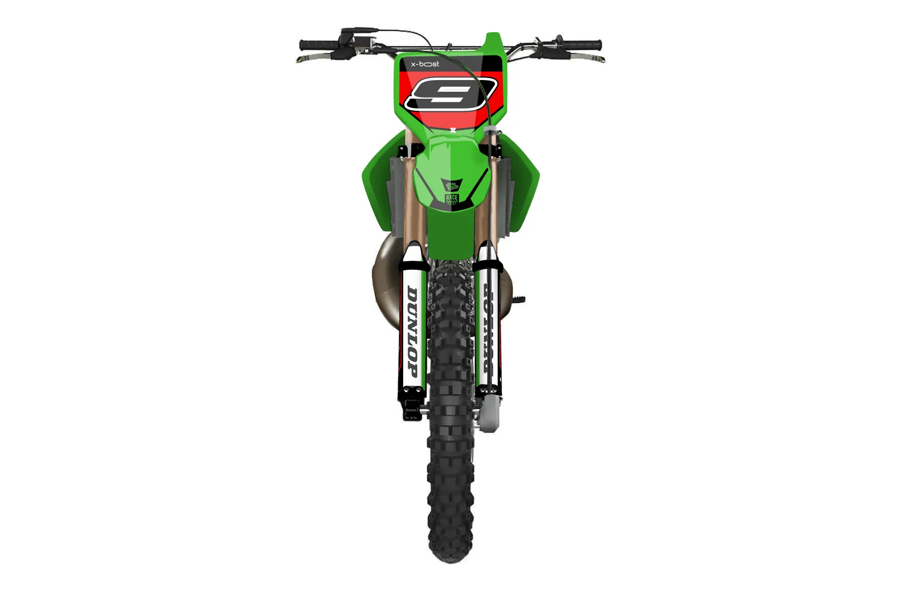 «kx250 2 stroke» — готовый комплект графики серии Maverick для Kawasaki MX Graphic Kit Kawasaki KX 250 2005. В комплекте: графика на бак и боковые облицовки, крылья (переднее и заднее), передний щиток, номерные таблички, защита вилки. Материал: ПВХ-винил 80 мкр с холодной ламинацией 300 мкр, общая толщина 380 мкр; покрытие глянцевое или матовое на выбор. Устойчив к UV-излучению, воде, бензину и мойке высокого давления. Клей акриловый на сольвентной основе — постоянный, для гибких пластиков. На простых поверхностях монтируется без нагрева; для сложных изгибов рекомендуем фен. Этот пресет можно заказать как есть или взять за основу в конструкторе: поменять цвета, добавить стартовый номер и свой бренд. Производство — 3–5 рабочих дней, доставка по России СДЭКом или Почтой, по СНГ — курьерскими службами.