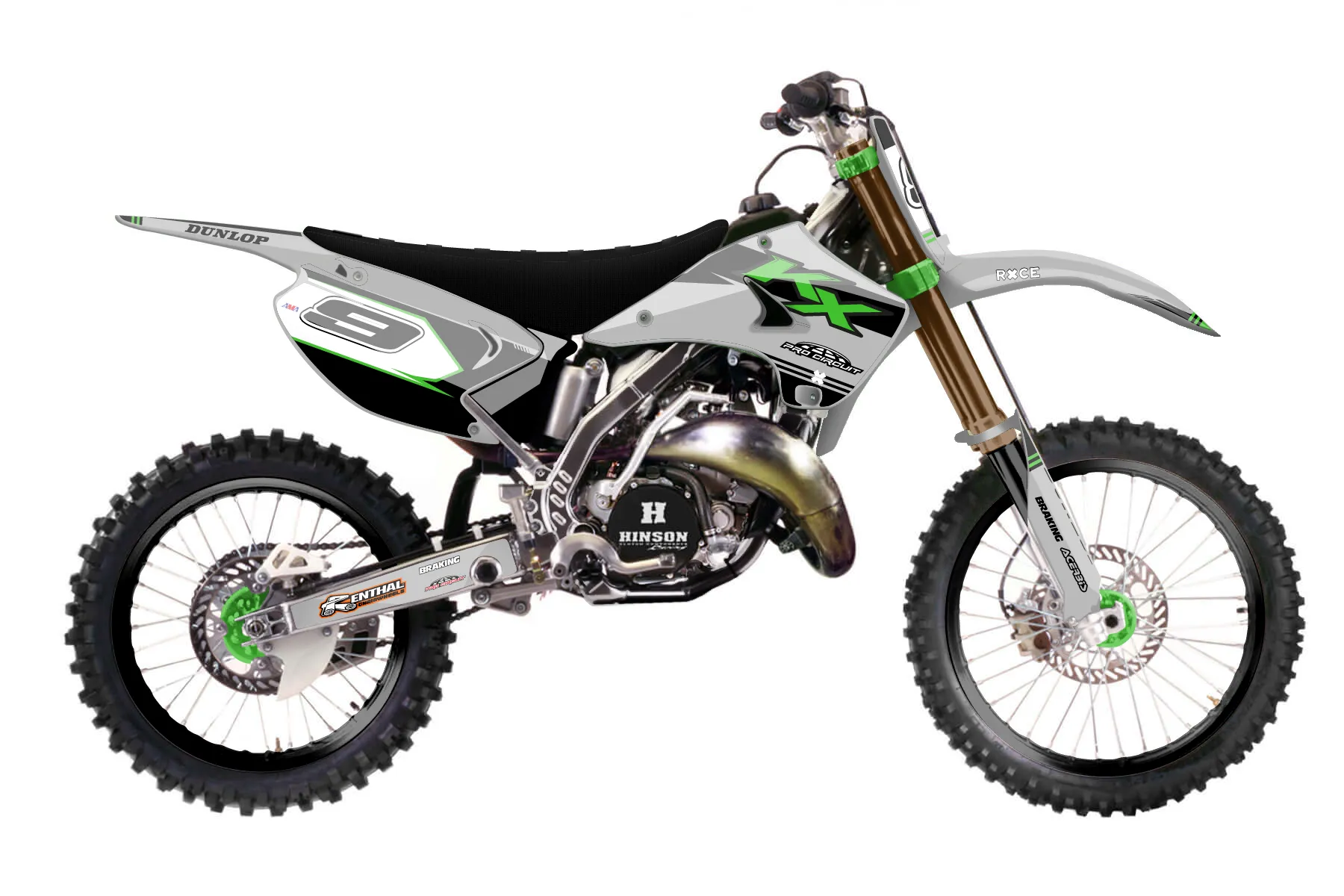 «Concepts» — готовый комплект графики серии Untucked для Kawasaki MX Graphic Kit Kawasaki KX 250 2005. В комплекте: графика на бак и боковые облицовки, крылья (переднее и заднее), передний щиток, номерные таблички, защита вилки. Материал: ПВХ-винил 80 мкр с холодной ламинацией 300 мкр, общая толщина 380 мкр; покрытие глянцевое или матовое на выбор. Устойчив к UV-излучению, воде, бензину и мойке высокого давления. Клей акриловый на сольвентной основе — постоянный, для гибких пластиков. На простых поверхностях монтируется без нагрева; для сложных изгибов рекомендуем фен. Этот пресет можно заказать как есть или взять за основу в конструкторе: поменять цвета, добавить стартовый номер и свой бренд. Производство — 3–5 рабочих дней, доставка по России СДЭКом или Почтой, по СНГ — курьерскими службами.