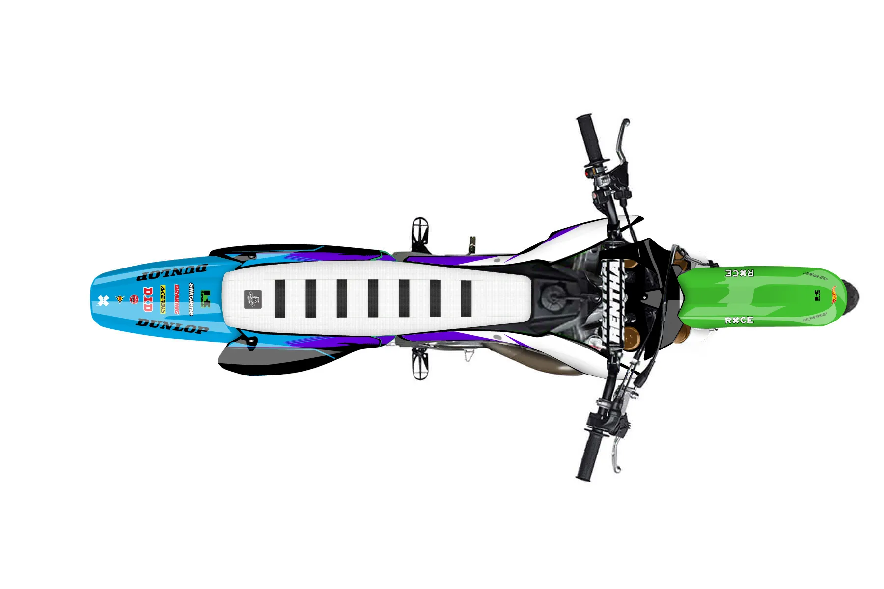 «Space» — готовый комплект графики серии Untucked для Kawasaki MX Graphic Kit Kawasaki KX 250 2005. В комплекте: графика на бак и боковые облицовки, крылья (переднее и заднее), передний щиток, номерные таблички, защита вилки. Материал: ПВХ-винил 80 мкр с холодной ламинацией 300 мкр, общая толщина 380 мкр; покрытие глянцевое или матовое на выбор. Устойчив к UV-излучению, воде, бензину и мойке высокого давления. Клей акриловый на сольвентной основе — постоянный, для гибких пластиков. На простых поверхностях монтируется без нагрева; для сложных изгибов рекомендуем фен. Этот пресет можно заказать как есть или взять за основу в конструкторе: поменять цвета, добавить стартовый номер и свой бренд. Производство — 3–5 рабочих дней, доставка по России СДЭКом или Почтой, по СНГ — курьерскими службами.