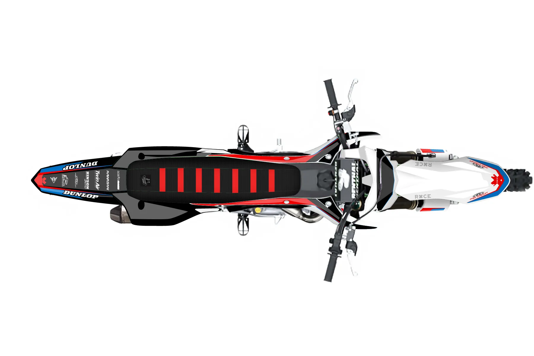 «Bang» — готовый комплект графики серии Flow для Kawasaki MX Graphic Kit Kawasaki KX 450 SR 2023. В комплекте: графика на бак и боковые облицовки, крылья (переднее и заднее), передний щиток, номерные таблички, защита вилки. Материал: ПВХ-винил 80 мкр с холодной ламинацией 300 мкр, общая толщина 380 мкр; покрытие глянцевое или матовое на выбор. Устойчив к UV-излучению, воде, бензину и мойке высокого давления. Клей акриловый на сольвентной основе — постоянный, для гибких пластиков. На простых поверхностях монтируется без нагрева; для сложных изгибов рекомендуем фен. Этот пресет можно заказать как есть или взять за основу в конструкторе: поменять цвета, добавить стартовый номер и свой бренд. Производство — 3–5 рабочих дней, доставка по России СДЭКом или Почтой, по СНГ — курьерскими службами.