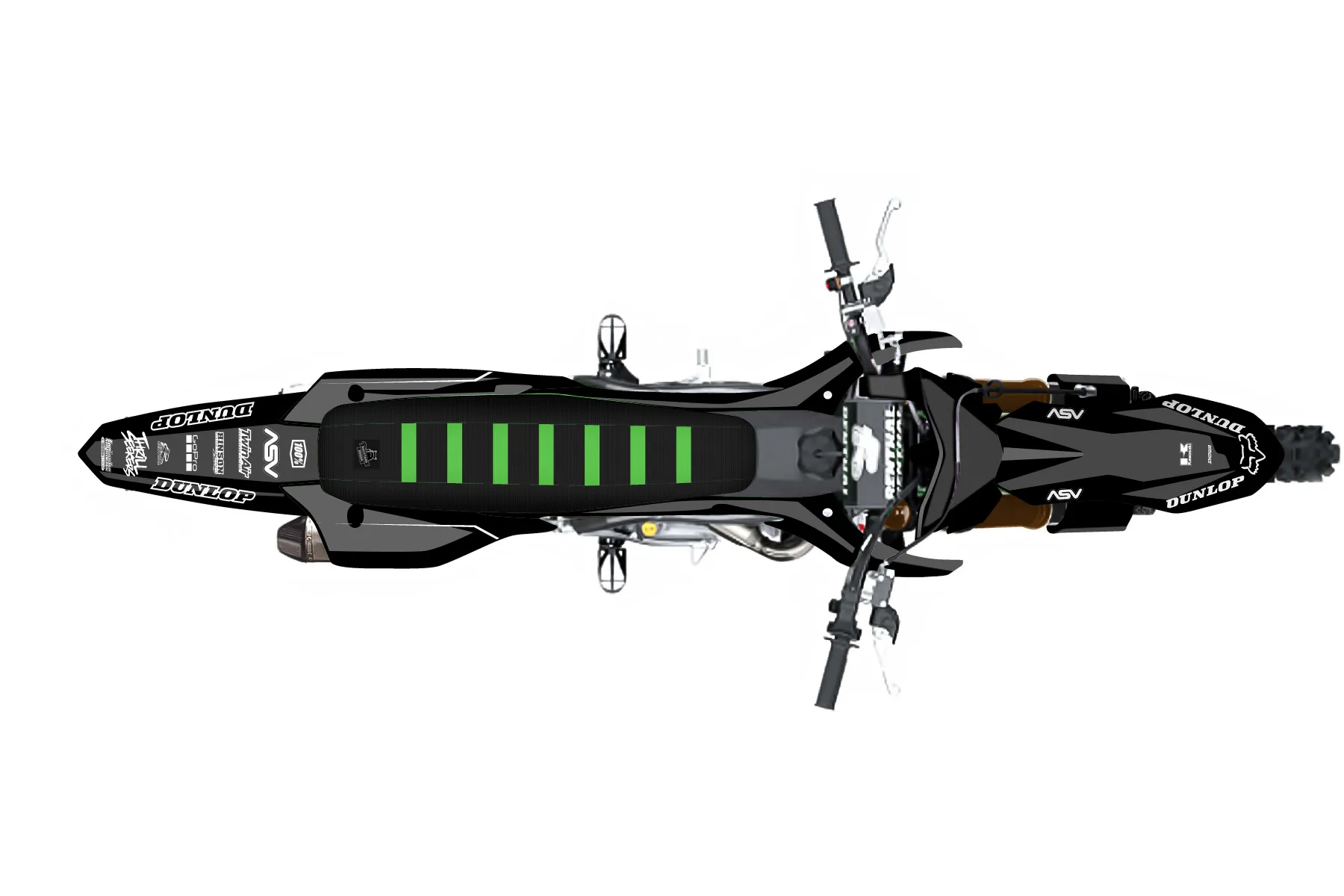 «23' 450 sr» — готовый комплект графики серии Maverick для Kawasaki MX Graphic Kit Kawasaki KX 450 SR 2023. В комплекте: графика на бак и боковые облицовки, крылья (переднее и заднее), передний щиток, номерные таблички, защита вилки. Материал: ПВХ-винил 80 мкр с холодной ламинацией 300 мкр, общая толщина 380 мкр; покрытие глянцевое или матовое на выбор. Устойчив к UV-излучению, воде, бензину и мойке высокого давления. Клей акриловый на сольвентной основе — постоянный, для гибких пластиков. На простых поверхностях монтируется без нагрева; для сложных изгибов рекомендуем фен. Этот пресет можно заказать как есть или взять за основу в конструкторе: поменять цвета, добавить стартовый номер и свой бренд. Производство — 3–5 рабочих дней, доставка по России СДЭКом или Почтой, по СНГ — курьерскими службами.